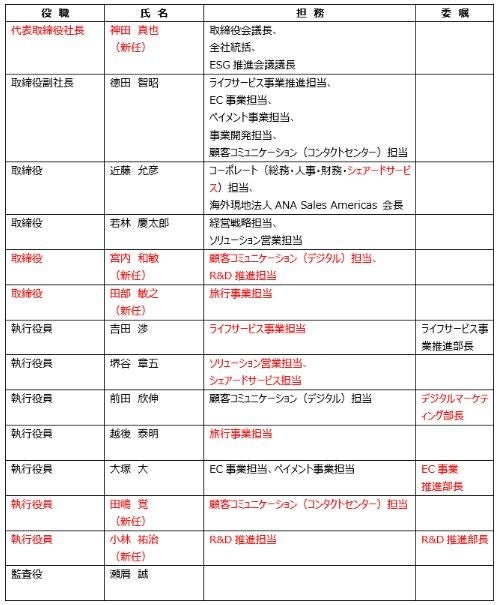ANA X 株式会社は、3 月4 日(月)開催の臨時取締役会において、4 月1 日付の常勤取締役ならびに常勤執行役員の選任を決議いたしましたのでお知らせいたします。※