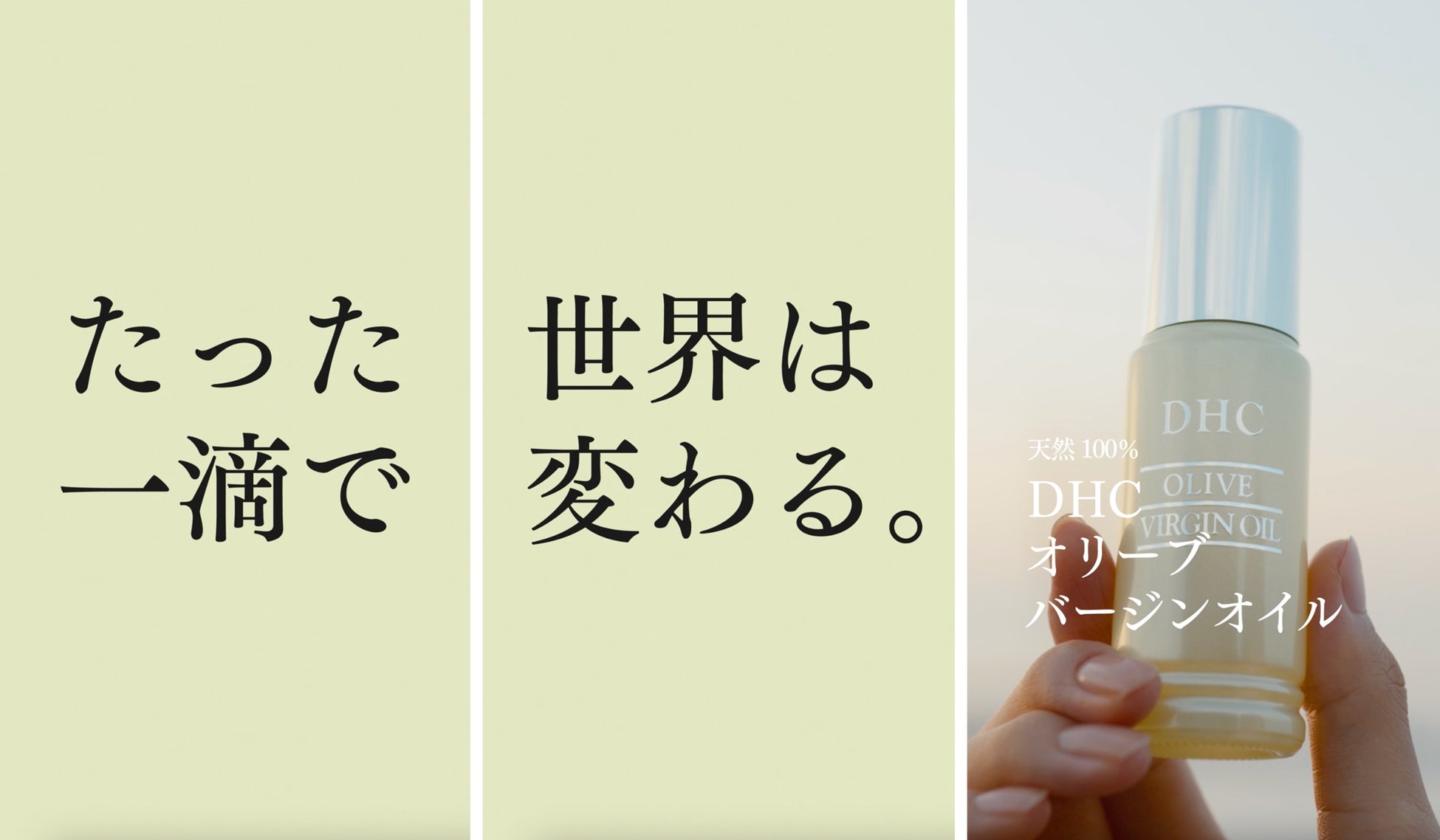 「たった一滴で、世界は変わる。」のコピーを冒頭に露出した後に、オリーブの一滴をクローズアップします。しずくの中にスペイン・アンダルシアのオリーブ畑の風景が広がると、その畑で育ったみずみずしい1粒のオリーブの実からしずくが滴り落ち、1人の女性が潤いを実感するカットに移ります。その後、様々な場面で実感いただける様子を映しながら、「DHCオリーブバージンオイル」の使い心地の良さとブランドの世界観を表現した作品になっています。