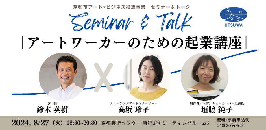 株式会社ツクリエ(本社:東京都千代田区 代表取締役:鈴木英樹 以下、ツクリエ)が公益財団法人京都市芸術文化協会から受託する京都市アート×ビジネス推進事業では、京都芸術センター内に「アート×ビジネス共創拠点『器』」を設置し、芸術関係者と企業等との交流やマッチング等につながる様々な取組を展開しています。