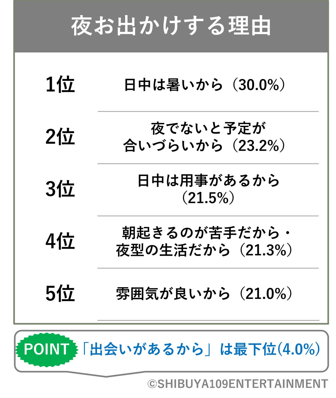 3.夜のお出かけ目的は「新しい出会い<仲を深める」