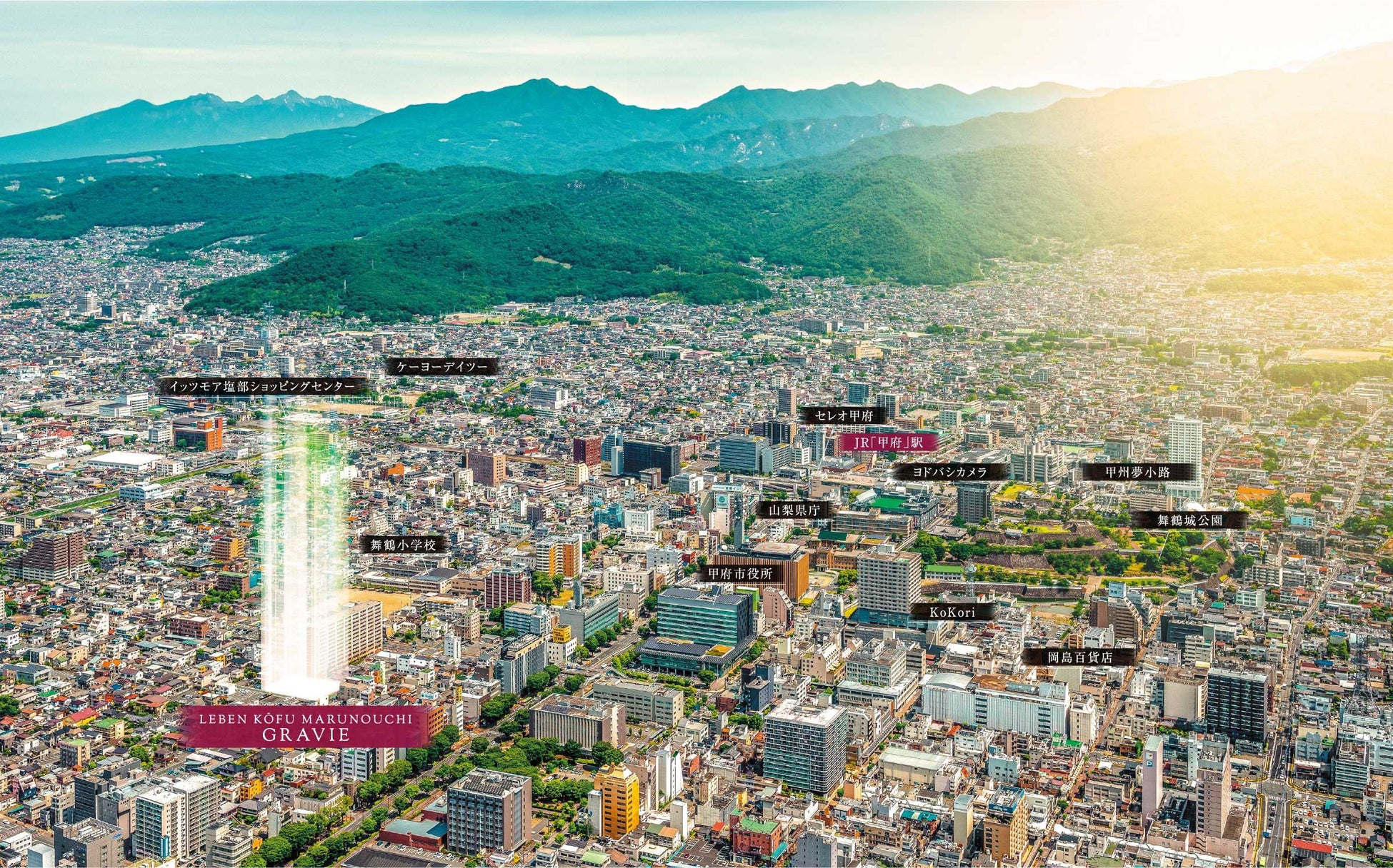 城下町として栄えた甲府の中枢。武家屋敷が集い、歴史の本流を継ぐ羨望の地に、8年の時を経て誕生する「レーベン甲府丸の内 GRAVIE」。