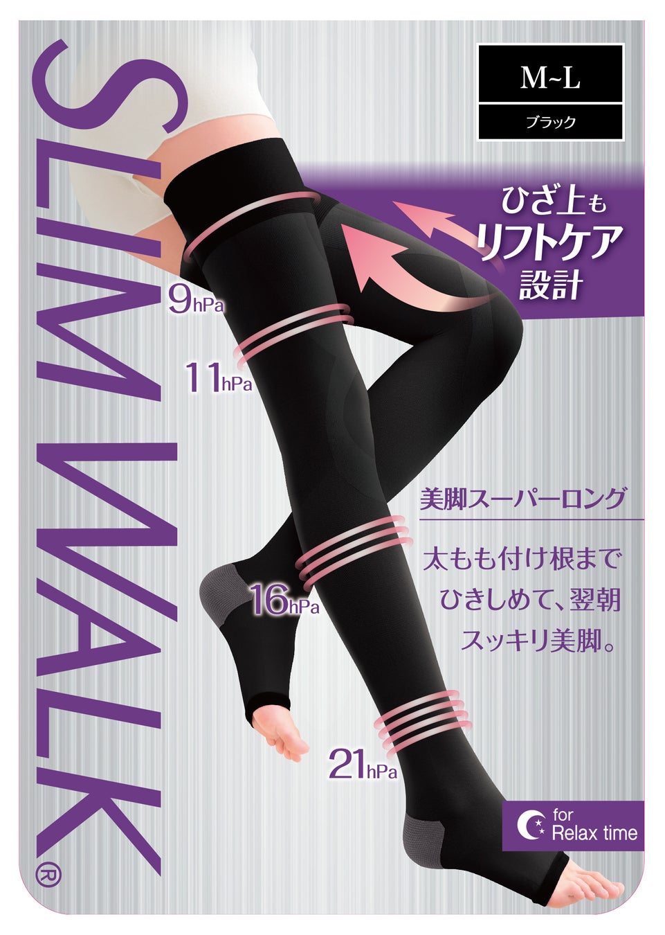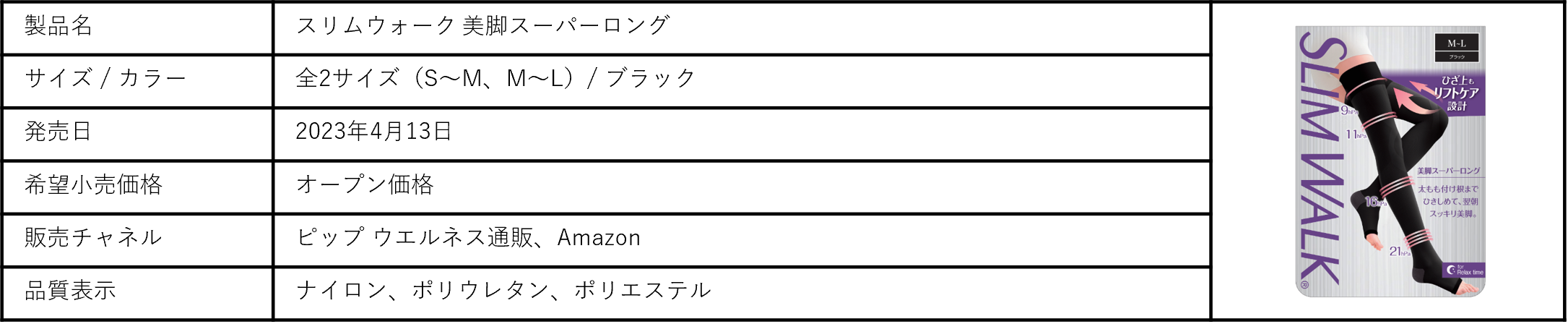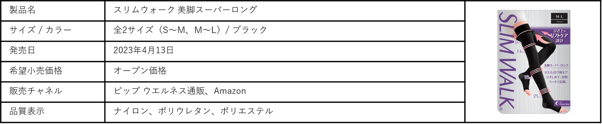 このような背景から、スリムウォークのおやすみ用シリーズをさらに充実させるため、シンプルな色味で日常に取り入れやすい「スリムウォーク美脚スーパーロング」のブラックを販路限定で販売します。
