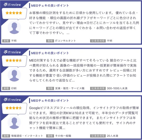 多くのお客様にご支持を頂き、13期連続でLeaderを受賞することができました。お客様から頂いたご意見をレビュー抜粋として掲載いたします。