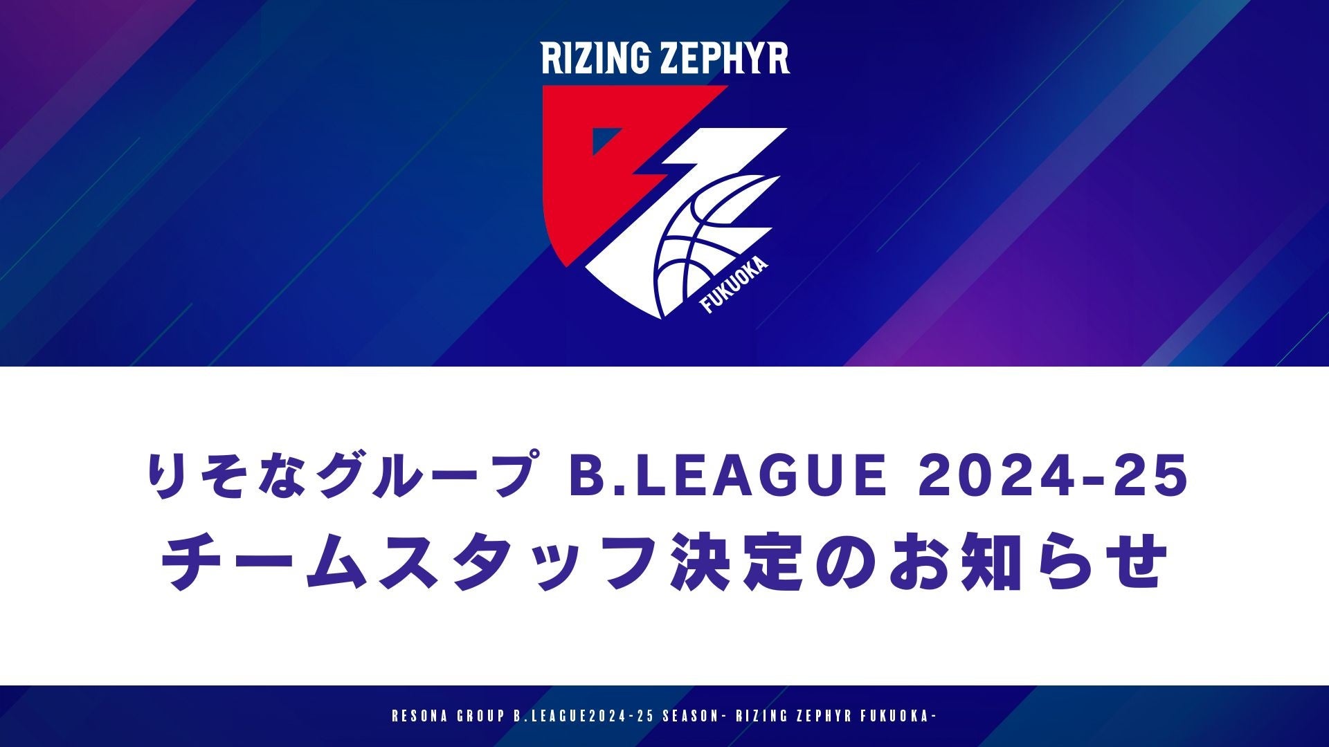 この度、りそなグループ B.LEAGUE 2024-25 ライジングゼファーフクオカのチームスタッフが決定しましたのでお知らせいたします。