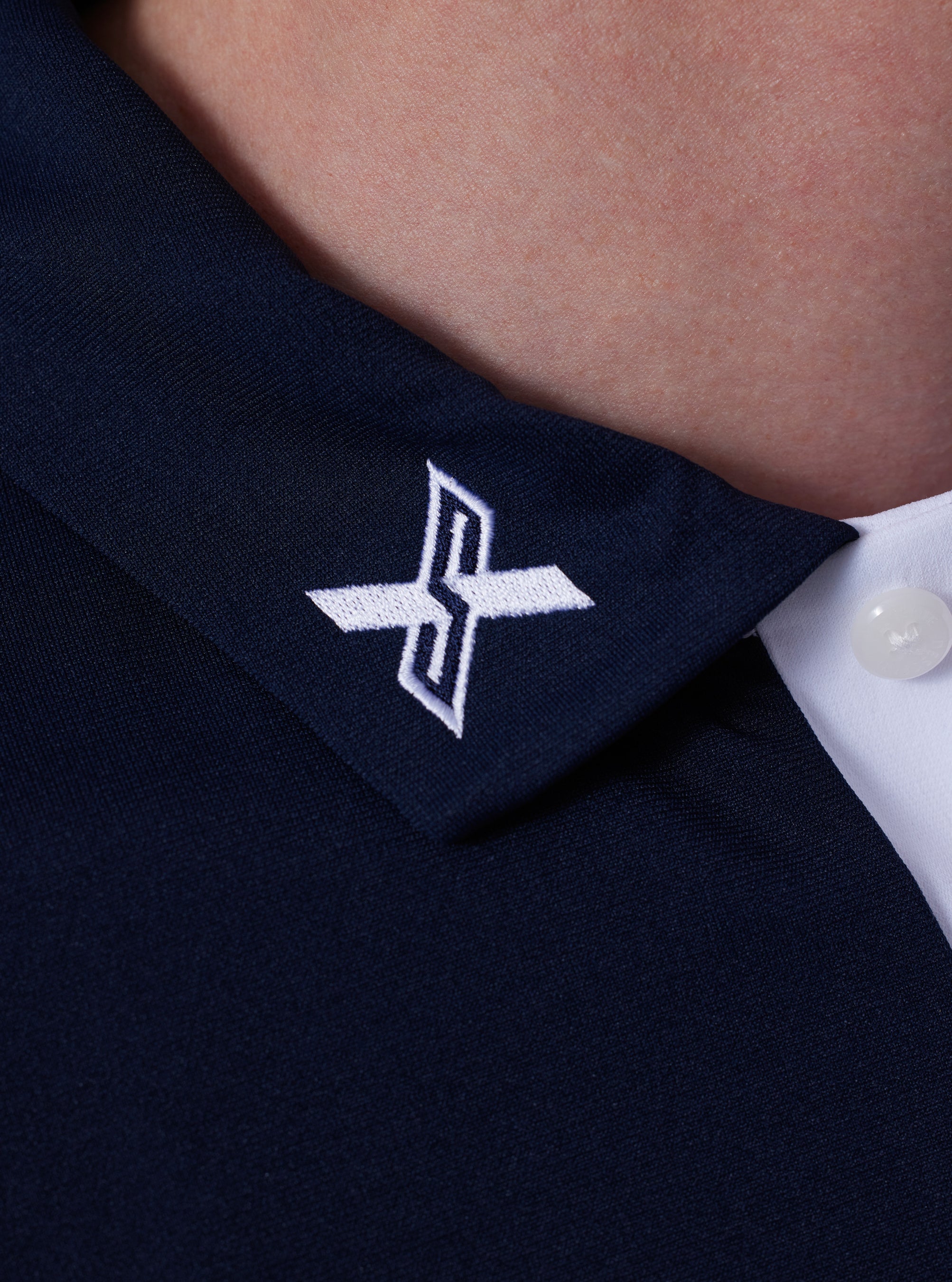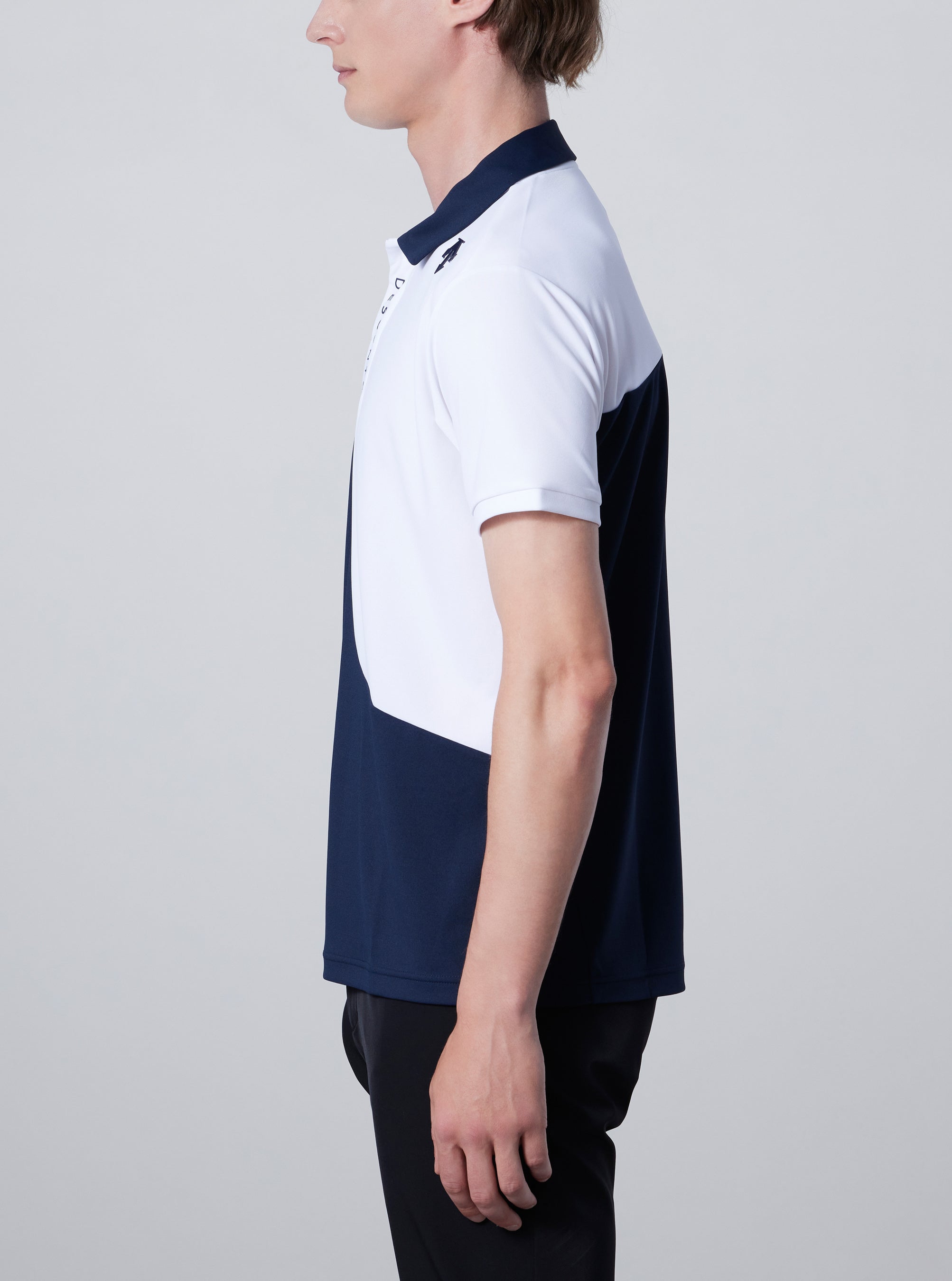前後身頃の配色された大胆な切り替えデザインが特徴的なデザインです。シルエットは程良くゆとりのあるレギュラーフィットで、スタイリッシュに着こなせます。右衿先にはザンダー・シャウフェレ(Xander Schauffele)選手オリジナルロゴマークの「X」を刺繍であしらっています。