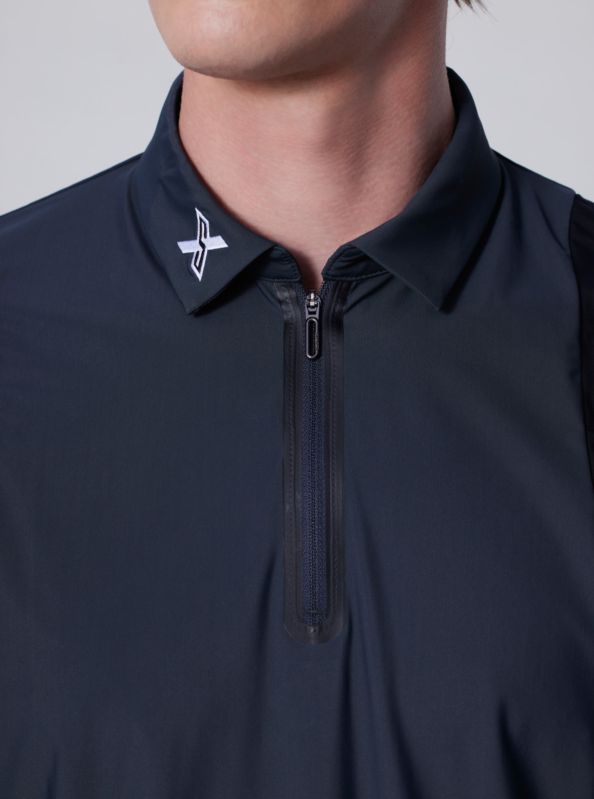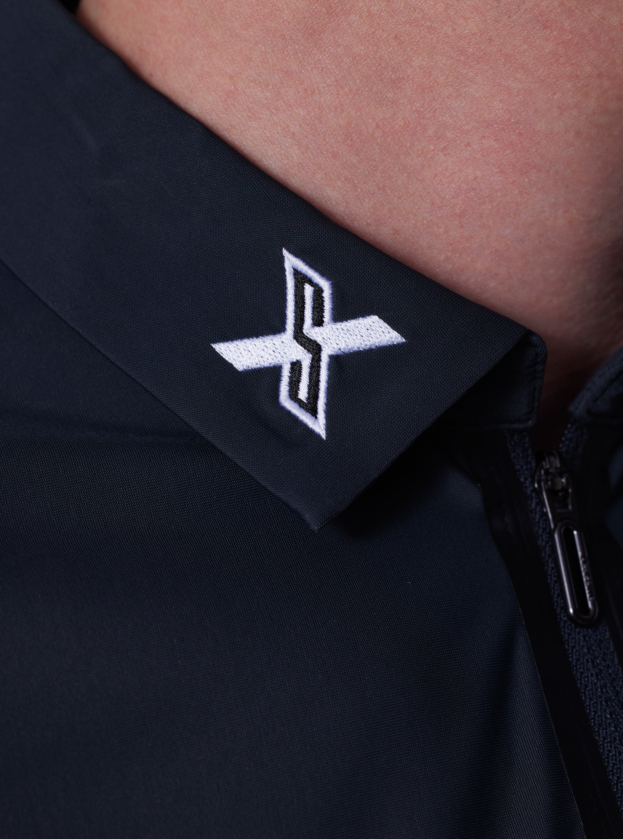 身頃はスイング時の可動域を広げるアシンメトリー(左右非対称)な切り替えパターンを採用し、衿は着脱もしやすいハーフジップ仕様です。シルエットは程良くゆとりのあるレギュラーフィットで、スタイリッシュに着こなせます。右衿先にはザンダー・シャウフェレ(Xander Schauffele)選手オリジナルロゴマーク の「X」を刺繍であしらっています。