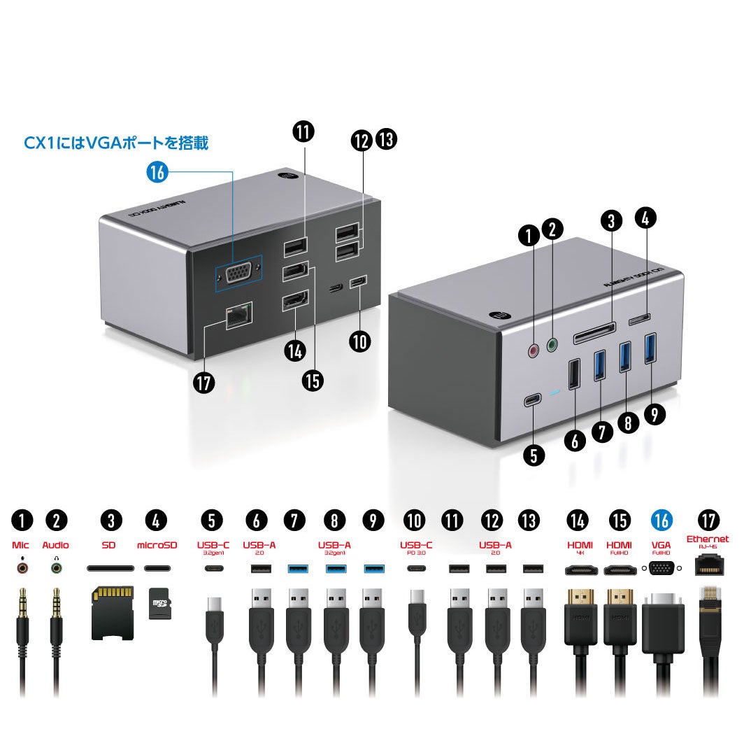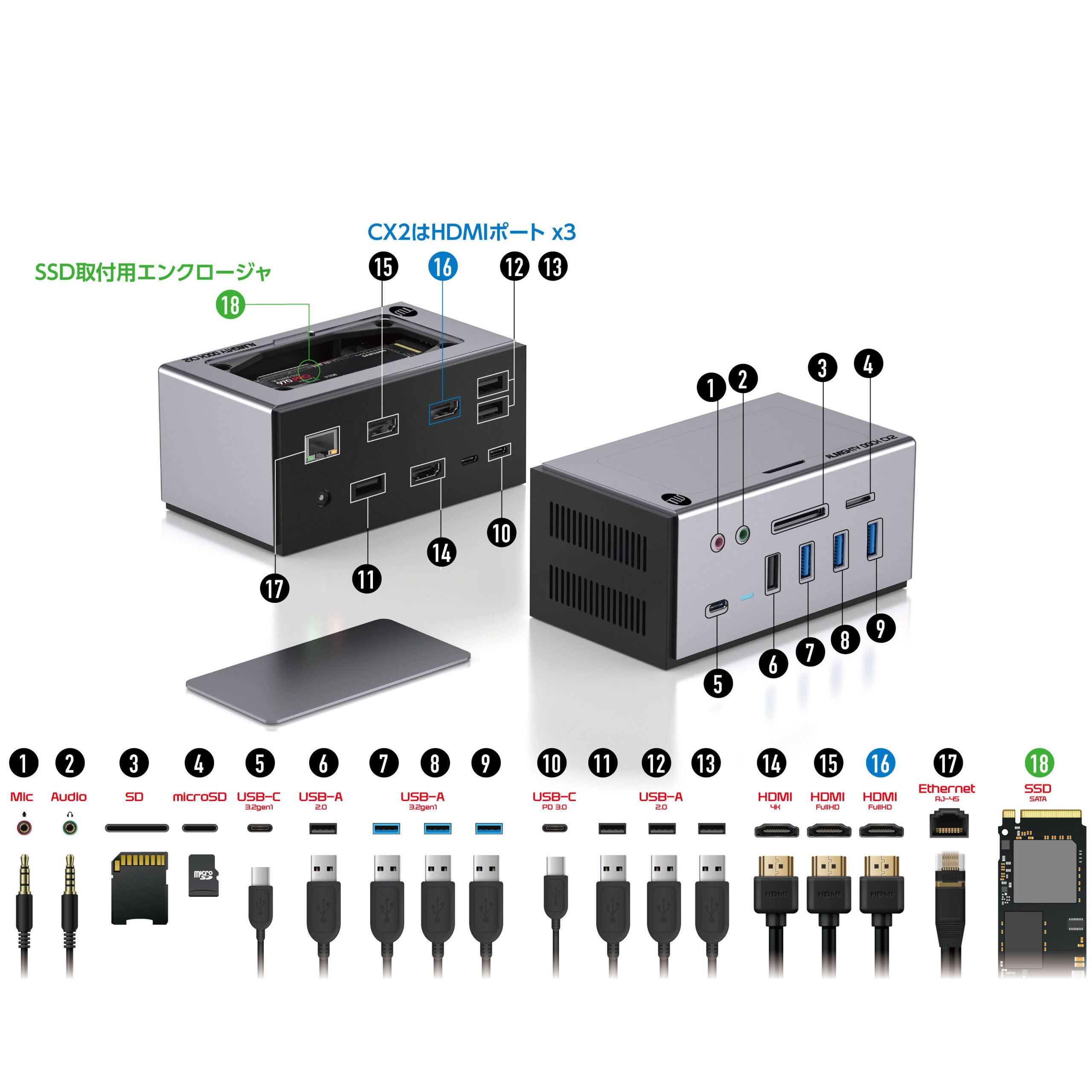 スライドスイッチ搭載の7 in 1 USB-C ドッキングステーション