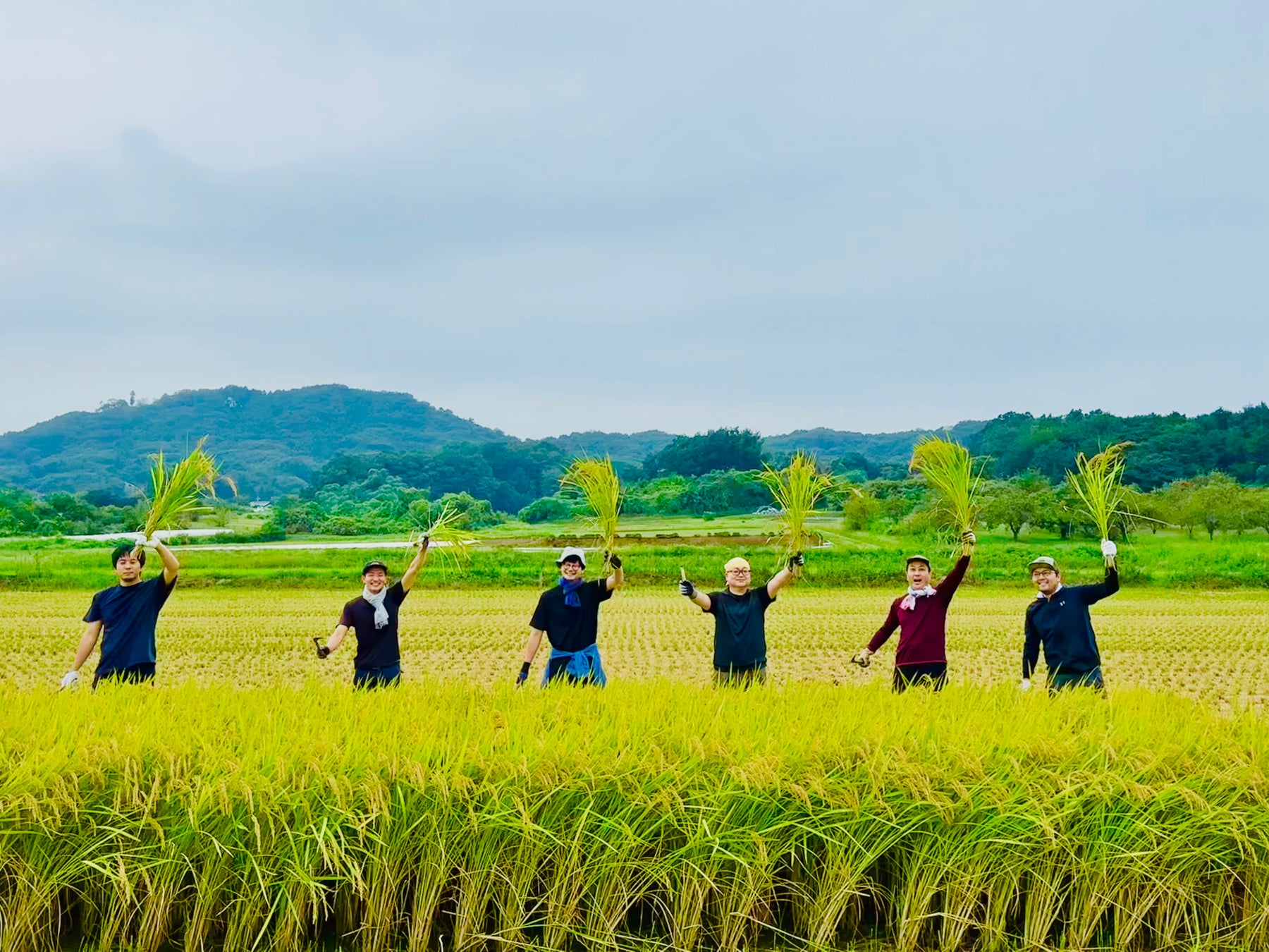 本年の新米は、収穫量1200キロで9月中旬に社員が一部収穫体験をしてきました。