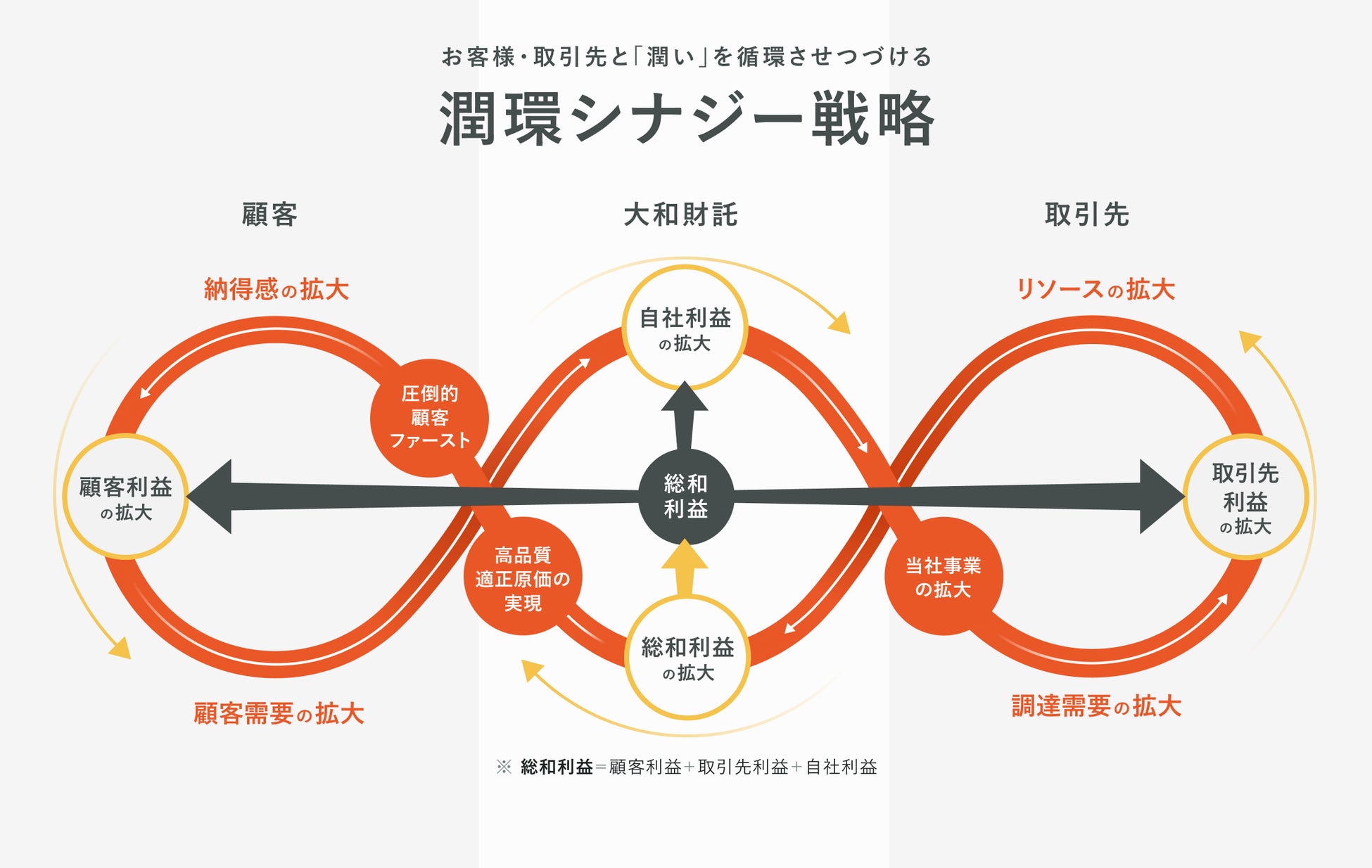 当社は今後も、事業を通して顧客・取引先・社員の人生の潤いをどこまでも高め続けます。そして日本国・世界各国のさらなる発展に貢献し、潤いを環(まわ)し続けられるよう誠心誠意取り組んでまいります。