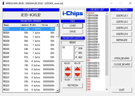 今回開発した『iEB-KXU2』では、FPGAの画像入出力に取り扱いの容易なLVDSを採用しており、付属のレジスタコンパイラ*を用いることで、開発・デバックに煩わされることなく本来の開発にご注力いただける基板となっております。
