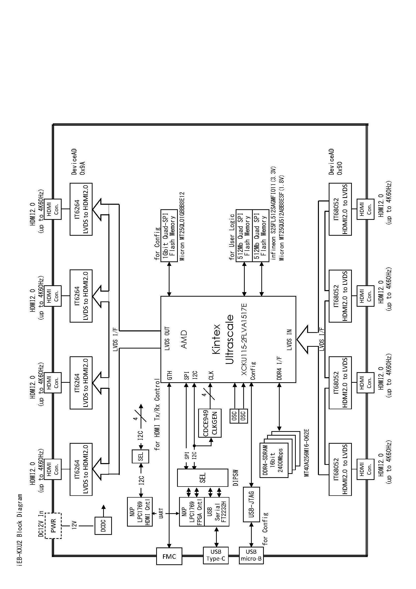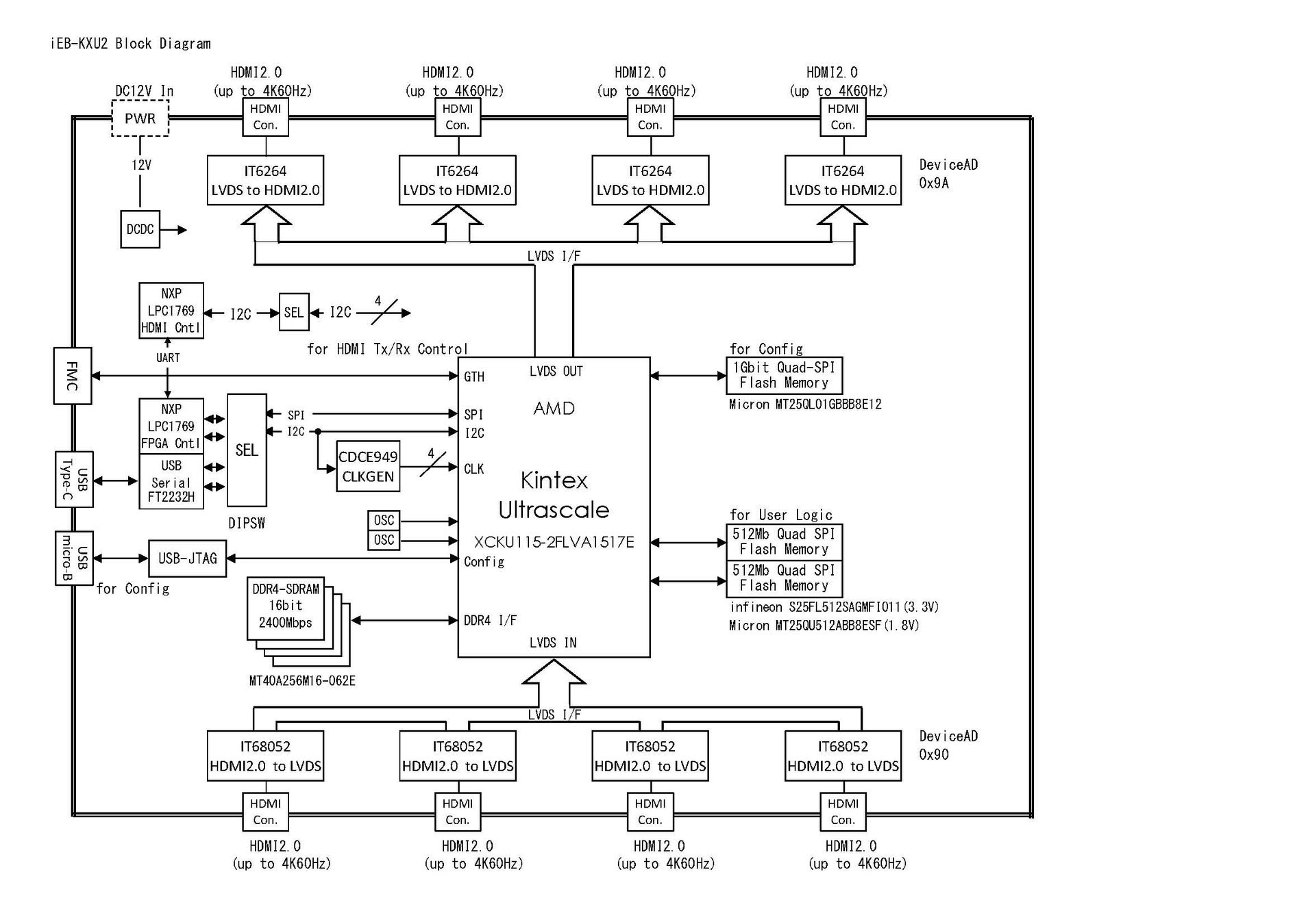 『iEB-KXU2』は、大規模で高速なFPGAであるAMD社製 Kintex UltraScale (XCKU115-2FLVA1517E)を搭載しており、高解像度の4K60Hz画像に対する複雑な画像処理にも対応可能です。