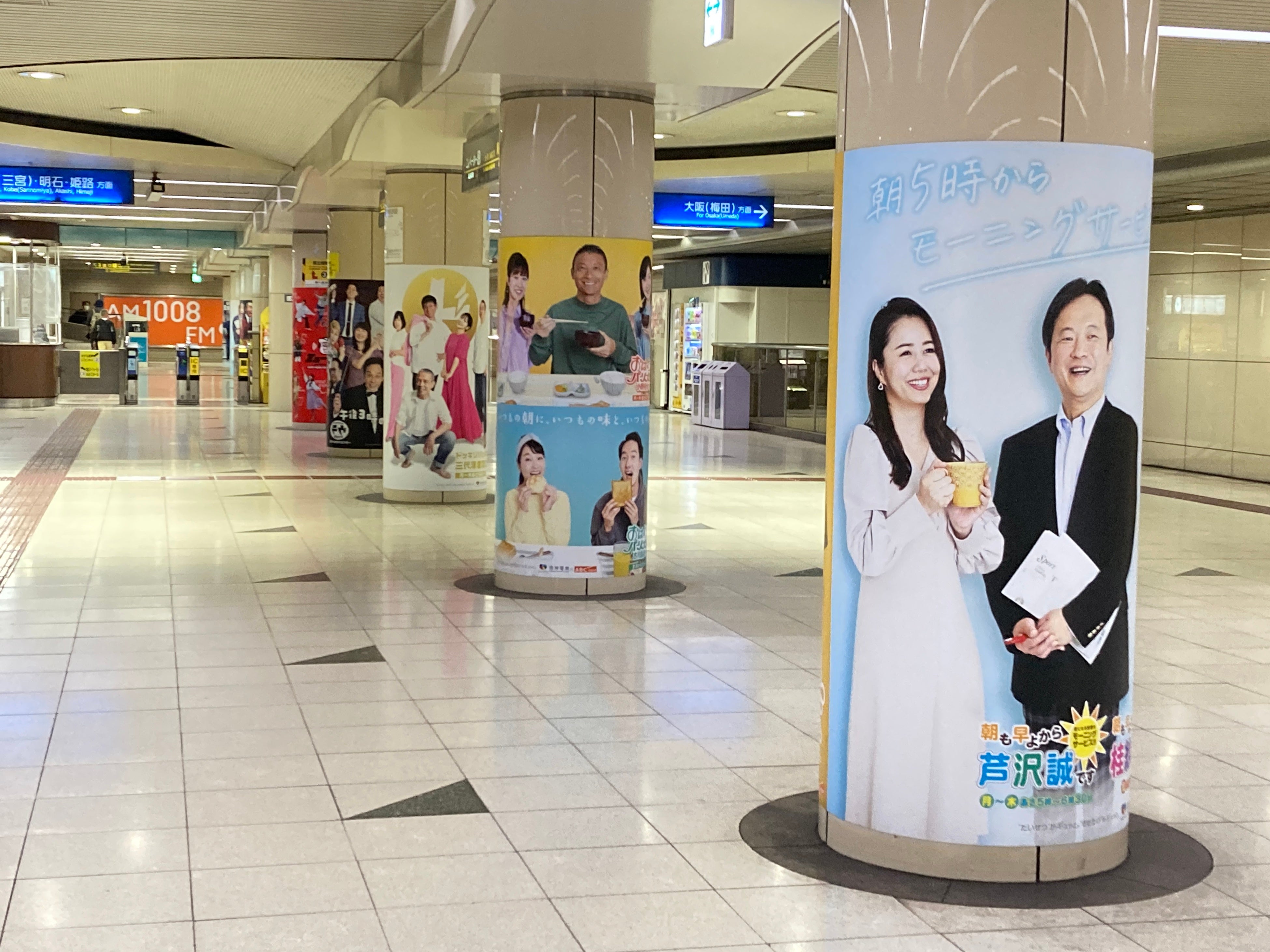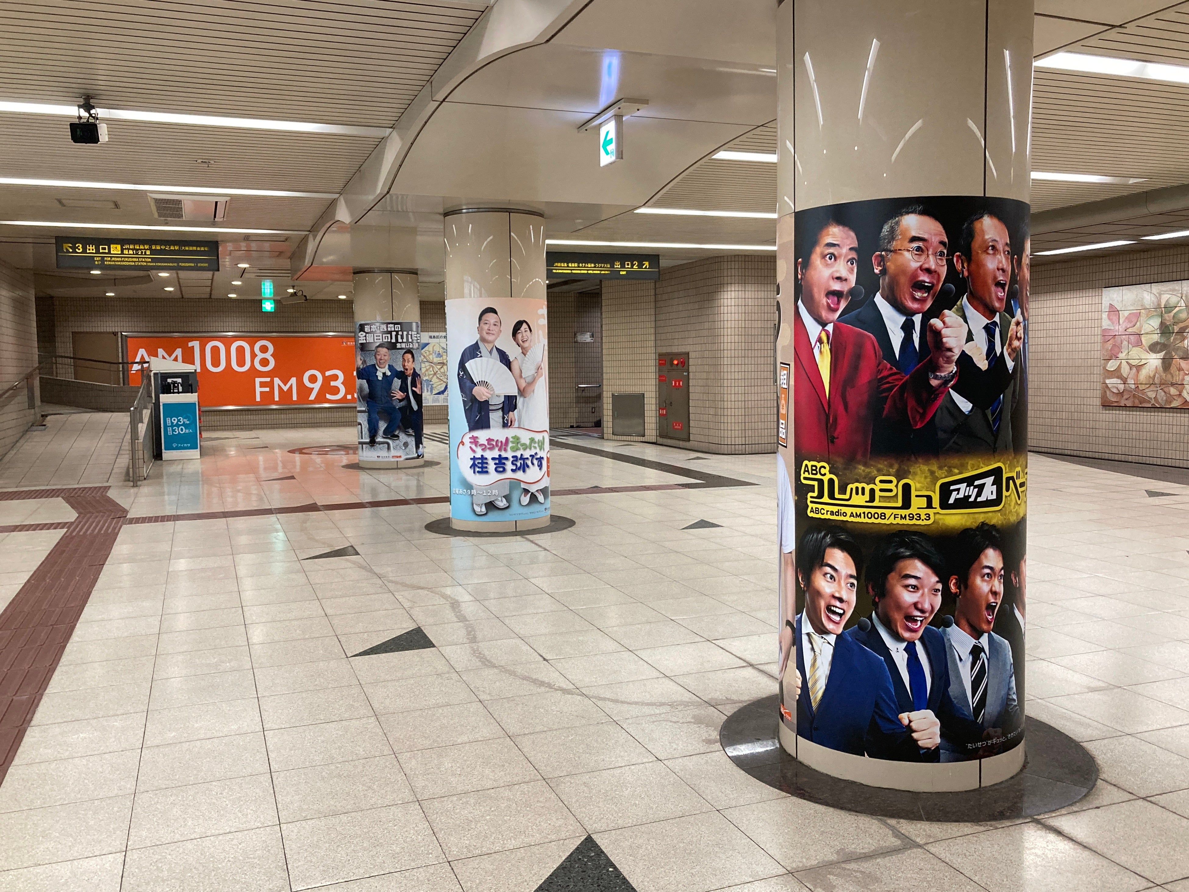 ABCラジオ本社の最寄り駅である阪神電車「福島駅」。昨年春から改札階やホーム階の看板をABCラジオでジャックし、番組ポスターやABCラジオの看板が装飾されている。