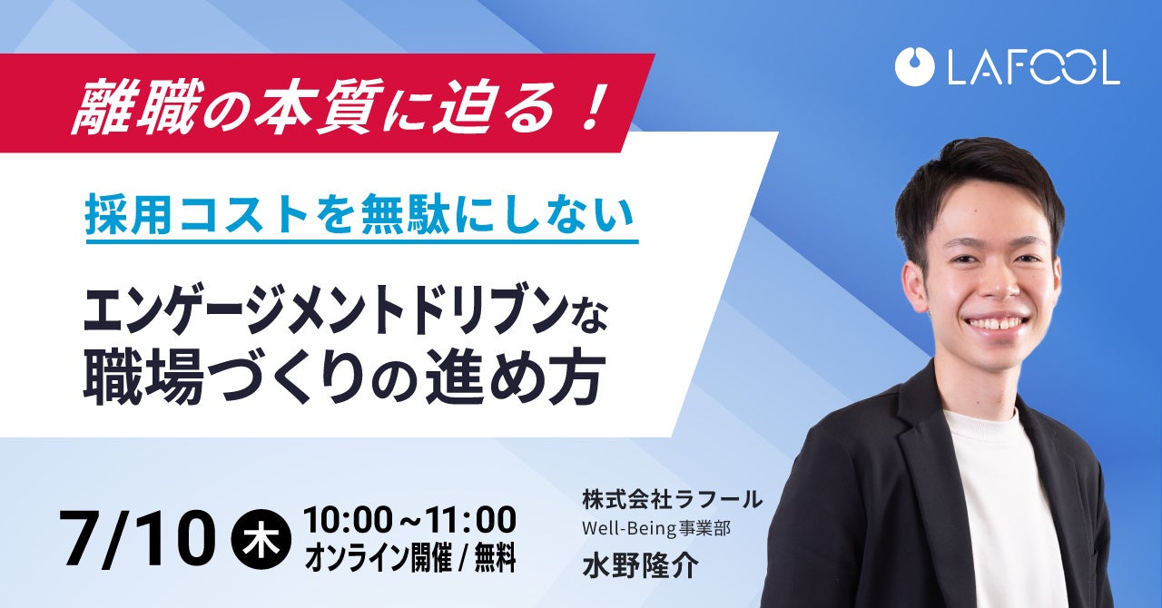 【7/10 開催】 ラフール、「離職の本質に迫る!採用コストを無駄にしない“エンゲージメントドリブン”な職場づくりの進め方」をテーマとしたセミナーを開催します