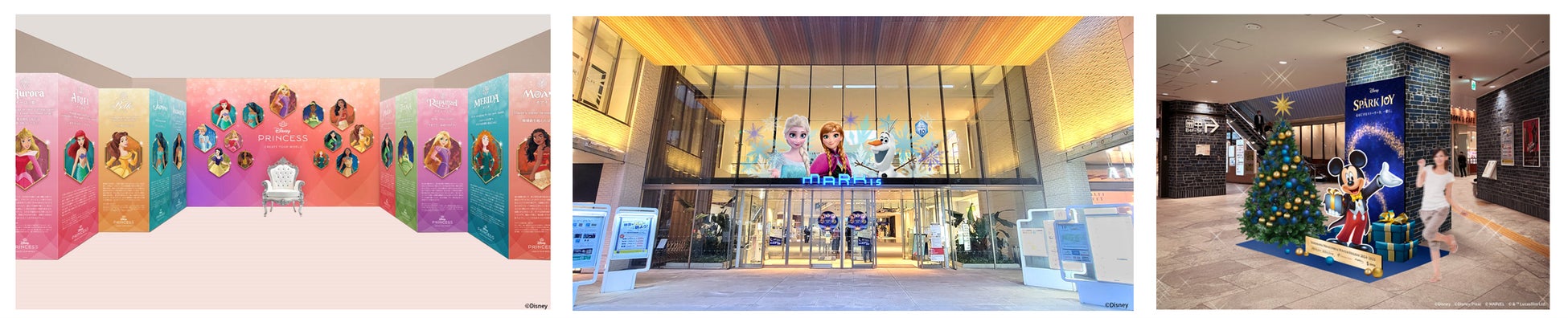 ランドマークプラザでは、ディズニー、ピクサー、マーベル、スター・ウォーズの4つのブランドの世界を表現した特別なツリーに加え、ミッキーマウスやスパイダーマンなどの人気キャラクターと写真が撮れるフォトスポットの設置や、4つのブランド36枚のキャラクターフラッグが館内を彩ります。横浜ランドマークタワー 69階展望フロア「スカイガーデン」では、マーベルとスター・ウォーズの特別展示を実施。スター・ウォーズの貴重なコレクションやマーベルを代表するヒーローたちの等身大スタチューなど、ファンにはたまらないコンテンツが盛りだくさんとなります。また、今回のホリデーイベント期間限定の特別なグッズ付き入場チケットの販売や、同フロア内にある「スカイカフェ」では、作品にインスパイアされた特別ドリンクをお楽しみいただけます。MARK IS みなとみらいでは、『アナと雪の女王』をイメージしたツリーに加え、レゴ®ブロックで作られたアナとエルサの展示や、13人におよぶディズニープリンセスのパネルが展示される「プリンセスギャラリー」を開催します。スカイビルでは、『トイ・ストーリー』をイメージしたツリーの展示の他、ピクサーのキャラクターと写真が撮れる様々なフォトスポットが設置されます。
