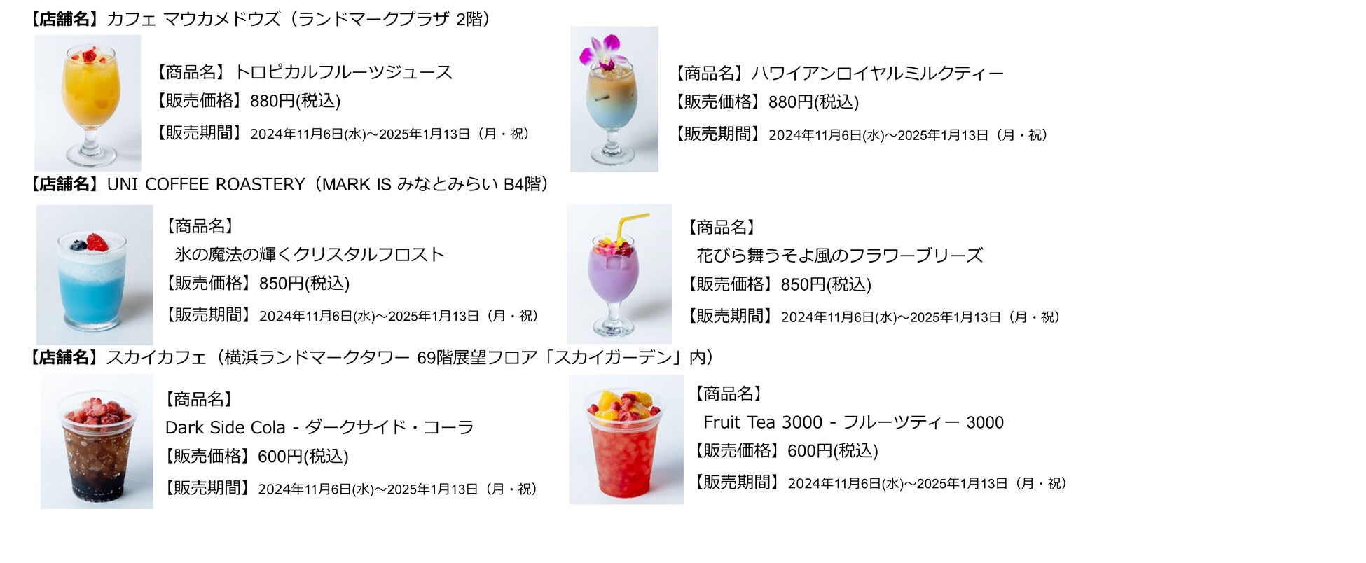 ■期間限定ドリンクメニューも両施設で販売