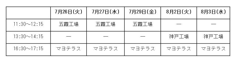 いずれの回も定員25名(先着順)、マヨテラスまたは工場見学と食品表示大研究の計45分のZOOMを使用したプログラムです。