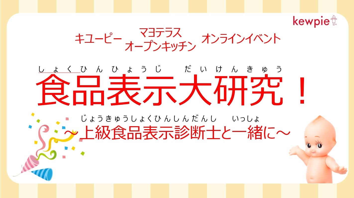 1つは上級食品表示診断士※の資格を持つキユーピーの従業員と一緒に子どもたちが「食品表示の見方の基本を知り、自分の目で食品を選ぶきっかけづくりになるような学びの機会「食品表示大研究!」とキユーピーの見学施設であるマヨテラスまたは工場のオンライン見学で構成した企画です。身近な食品の裏面表示にはどんなことが書いてあるか、ZOOMを用いた双方向コミュニケーションで楽しく会話しながら進めます。