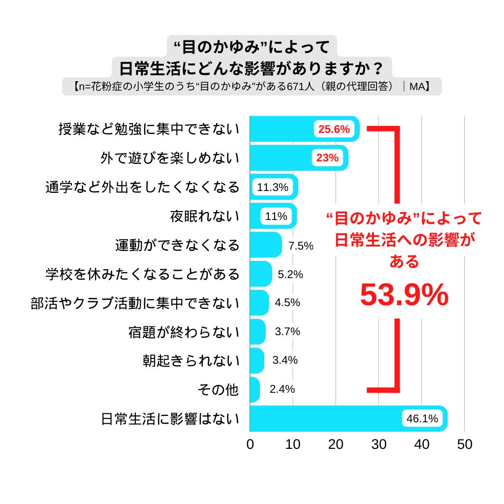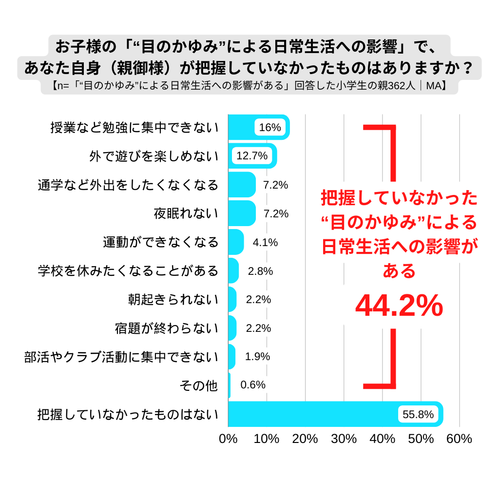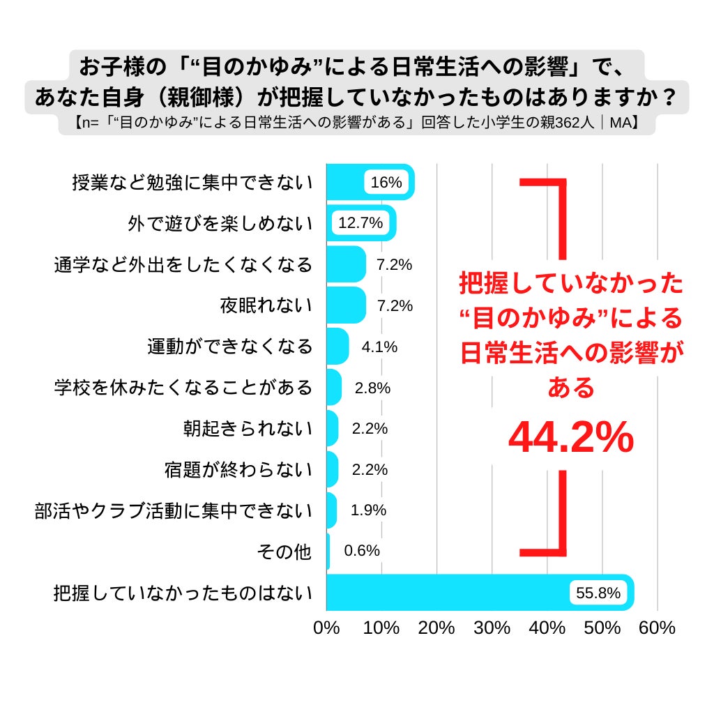 親の44.2%が把握していなかった「“目のかゆみによる”日常生活への影響」がある