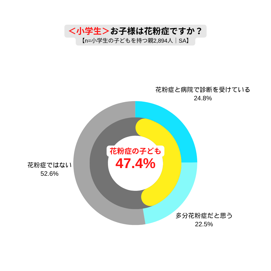 小学生の47.4%が「花粉症と診断」or「花粉症だと思う」、発症年齢は平均5.8歳