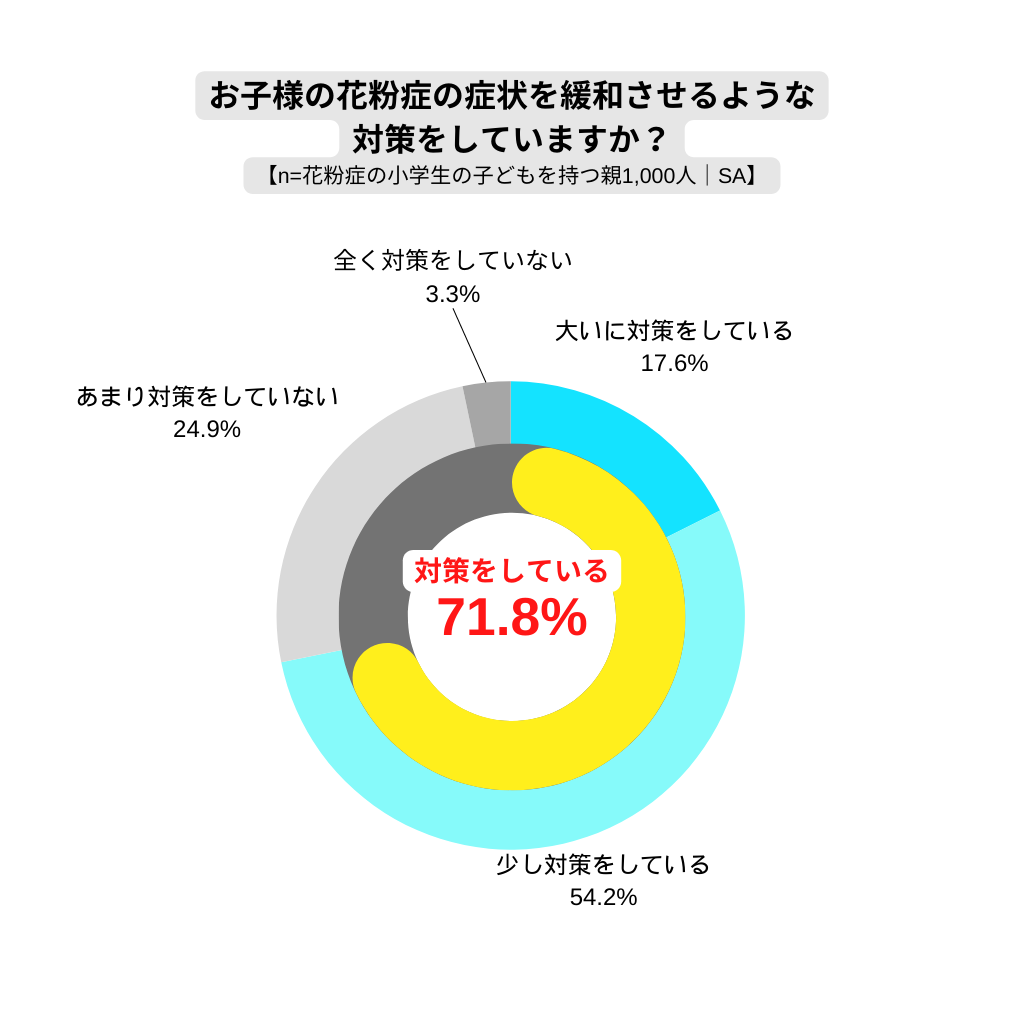 そんな中、実際に子どもの花粉症対策をとっている親は71.8%で、28.2%の親は対策をしていないことがわかりました。