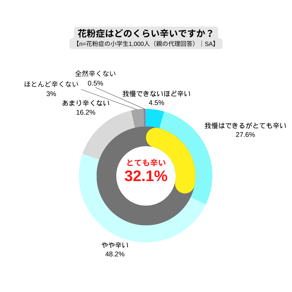 症状1位「鼻水」、2位「目のかゆみ」、32.1%が「とても辛い」