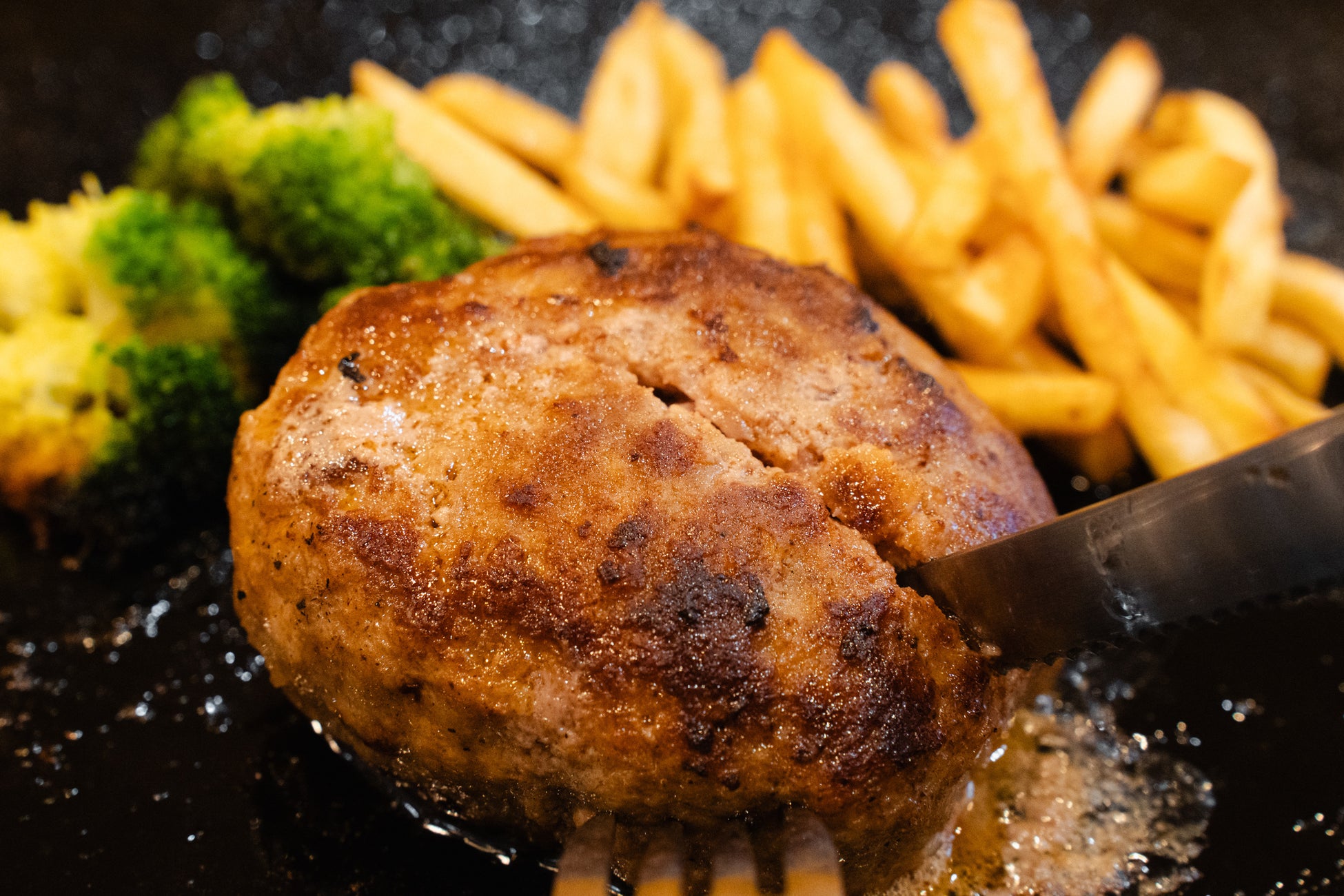 ナイフを使わずに切れるほどふわふわでお子様でも食べやすいハンバーグとなっております。