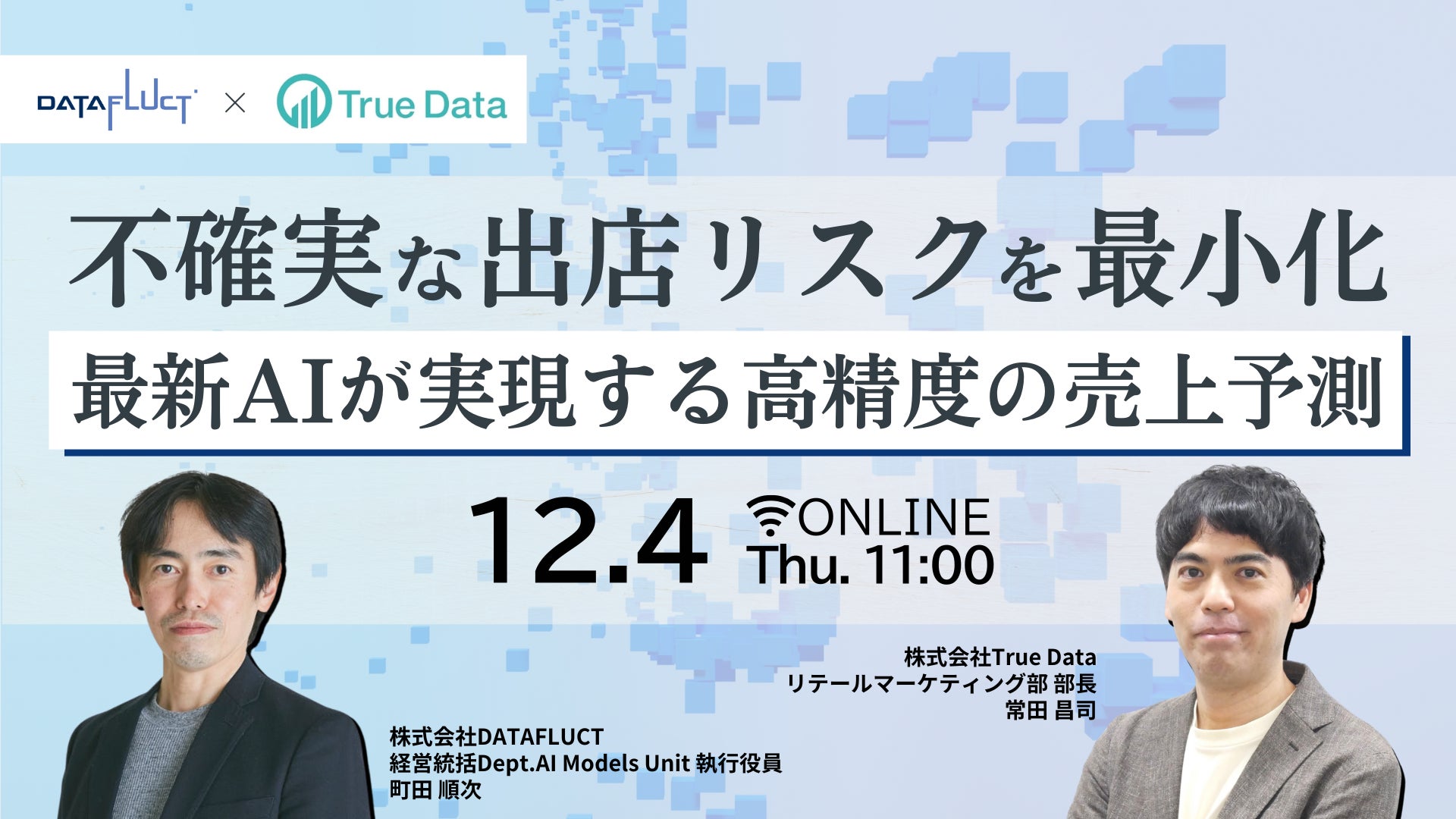 【12/4開催】「不確実な出店リスクを最小化 ―最新AIが実現する高精度の売上予測」DATAFLUCT、True Data共催セミナー