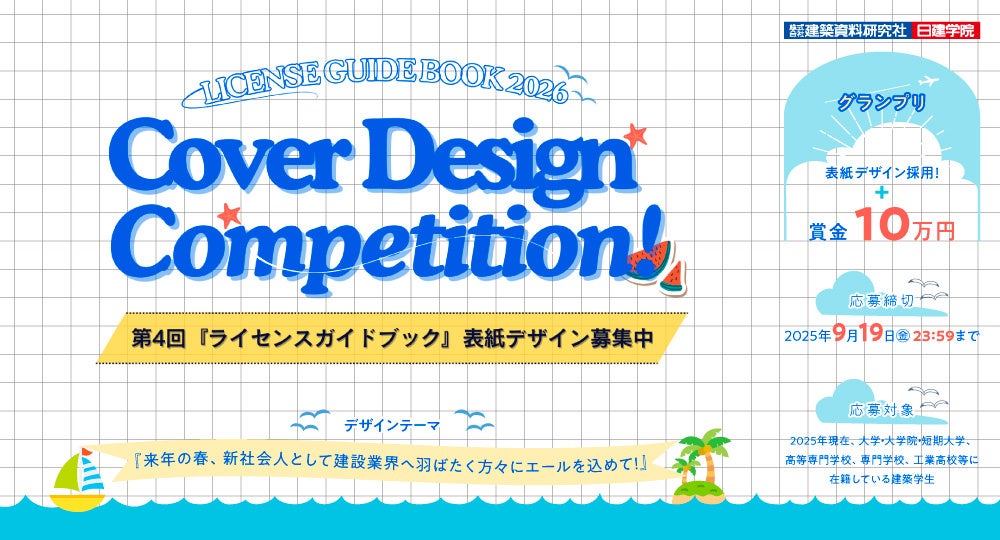 【グランプリはデザイン採用・賞金10万円】建築系学生向け「ライセンスガイドブック」表紙デザインコンペ開催!6月20日(金)より作品受付開始