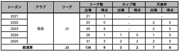 【サッカー歴】⾼須 SC→セレッソ⼤阪⻄ U-15→セレッソ⼤阪 U-18→産業能率⼤→福島ユナイテッド FC