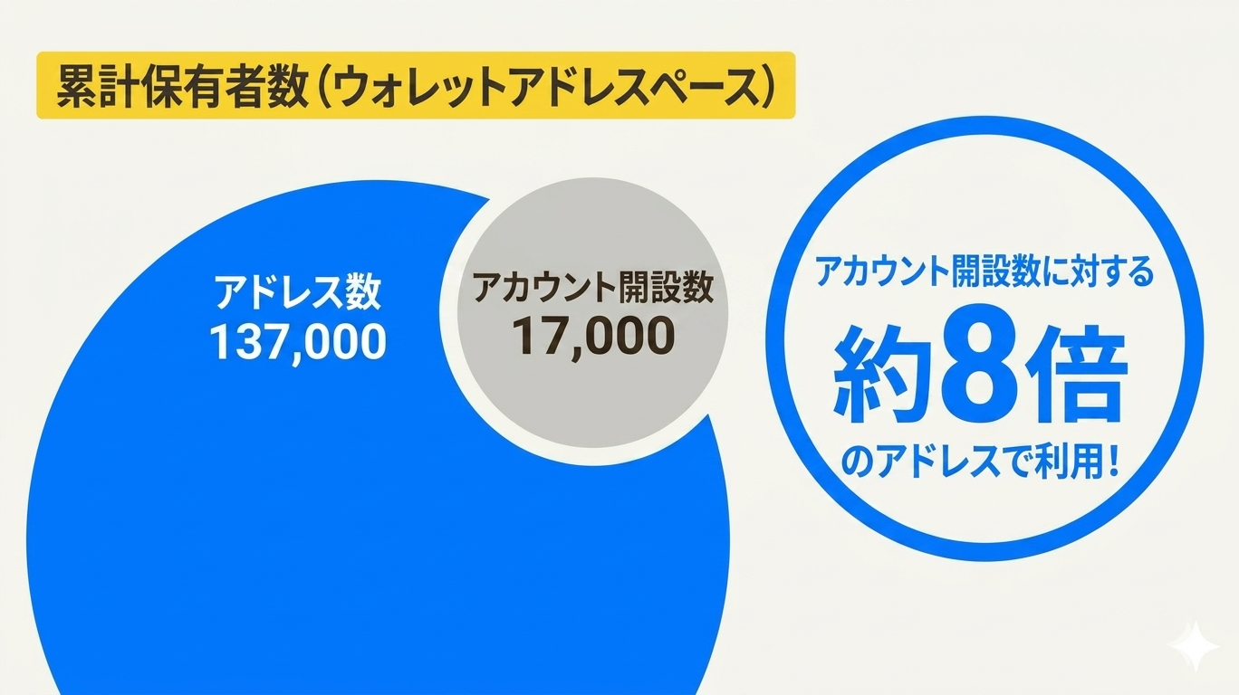 2. ユーザーの広がり:アカウント数の約8倍に達する利用アドレス数