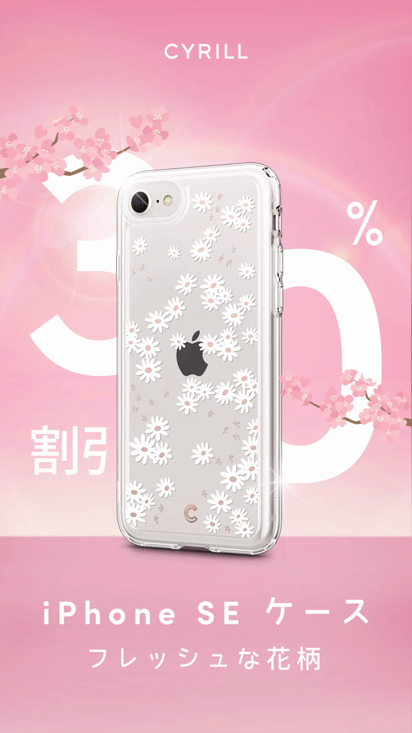 Spigenの姉妹ブランドCYRILL(シリル)がさわやかな春と桜の下でiPhone SE 3シリーズ品発売を記念して、iPhone SEとiPhone 13シリーズのフレッシュな花柄パターン製品について30%割引を期間限定で実施いたします。
