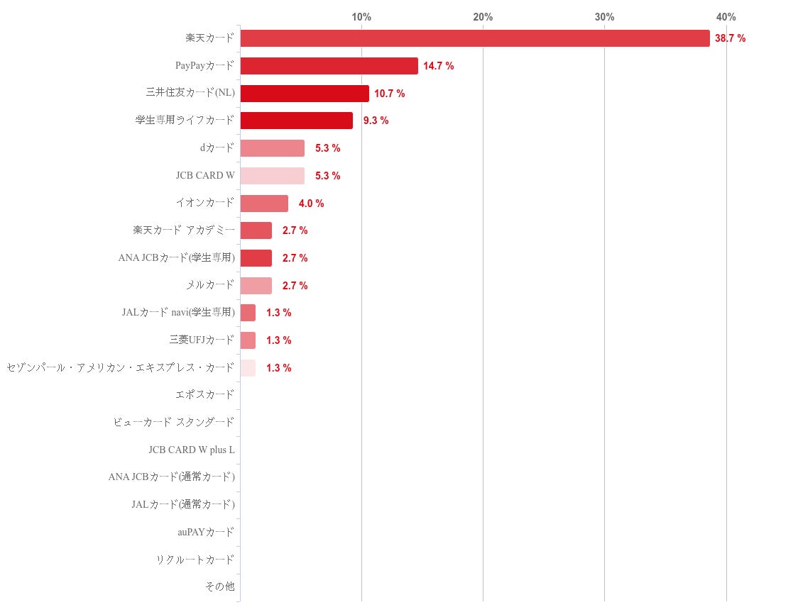 楽天カードが38.7%で最も多く、PayPayカードが14.7%でこれに続いた。