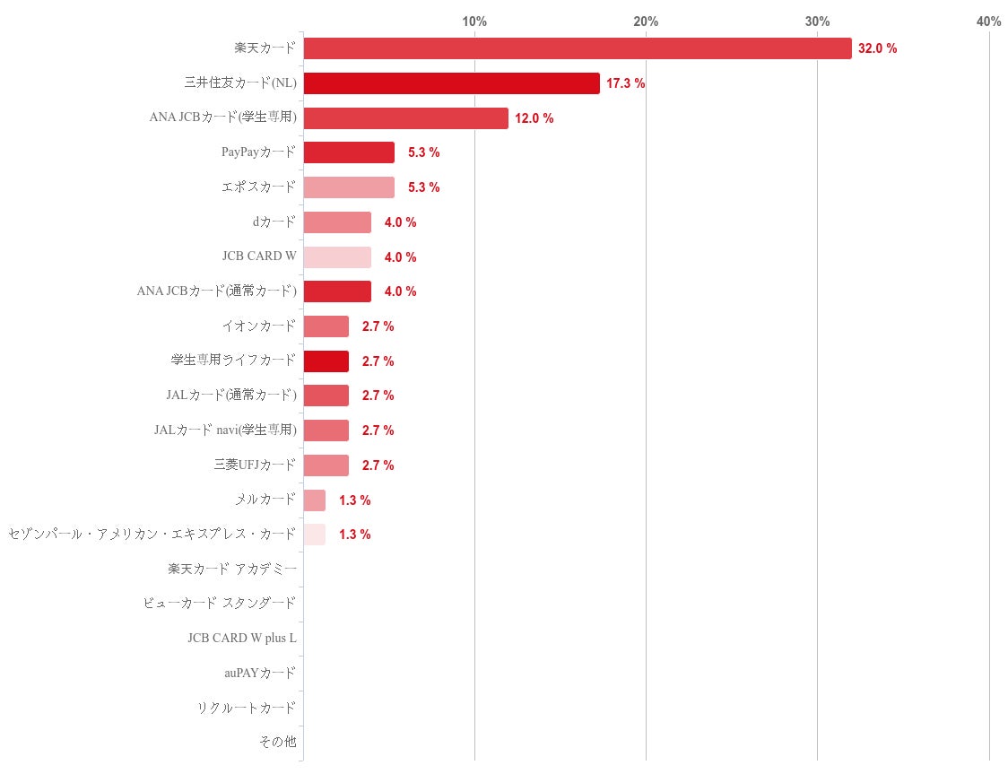 楽天カードが32.0%で最も多く、三井住友カード(NL)が17.3%でこれに続いた。