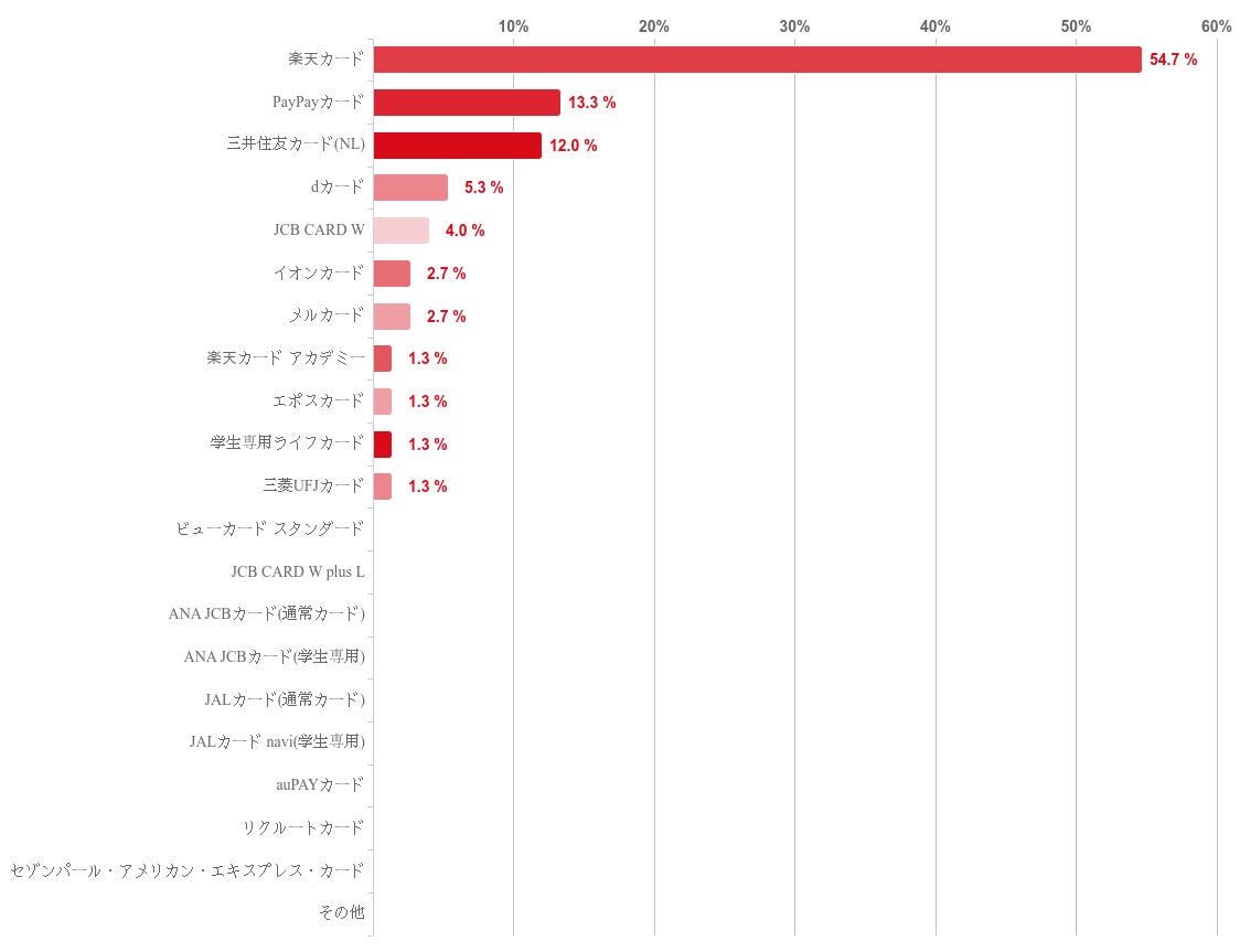 そのほかには、PayPayカードが13.3%、三井住友カード(NL)が12.0%でこれに続いた。