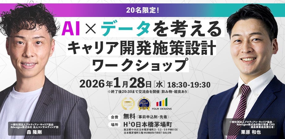 このたび、企業人事・HRBPを対象としたリアル開催イベント『AI×データを考える キャリア開発施策設計ワークショップ』を、2026年1月28日(水)に東京都中央区日本橋にて開催いたします。