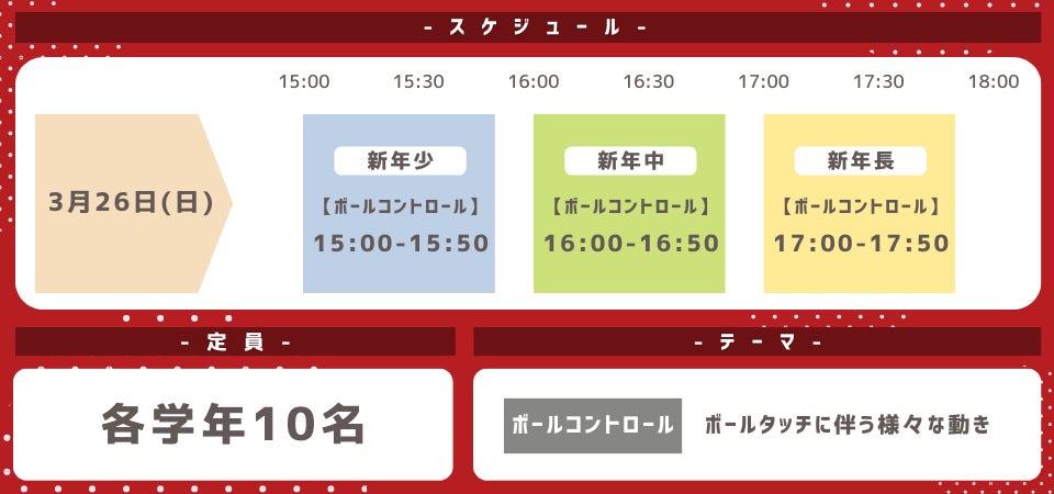 ・本イベントでは新年度から始まるスクールの入会枠は確保出来ません。