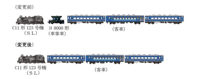 C11形123号機については、SLの後部に連結している「車掌車(ヨ8000形)」を連結せずに運行いたします。