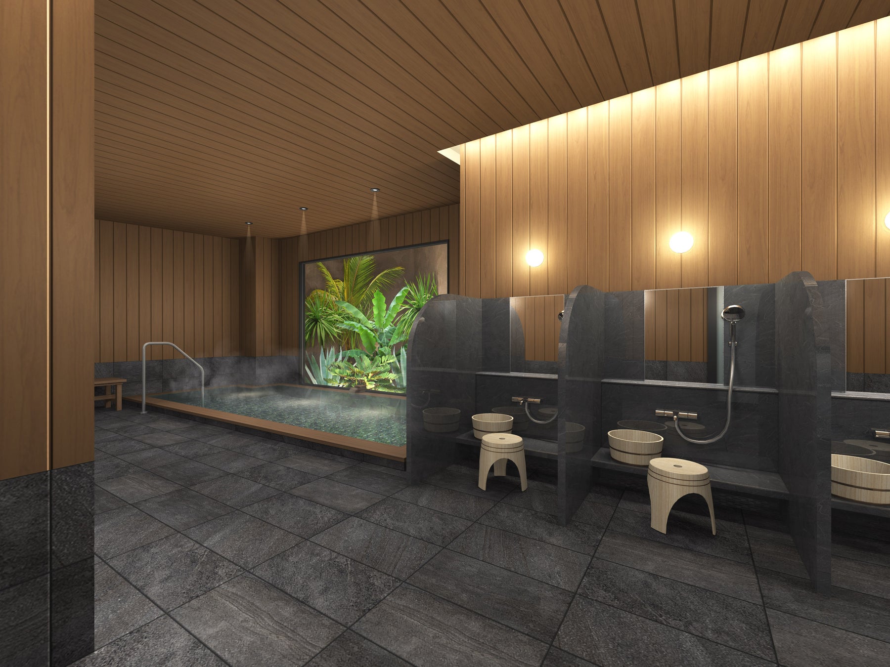 1階:ロビー、レストラン、男性大浴場(サウナ、水風呂)、駐車場110台(敷地内・周辺含む)予定