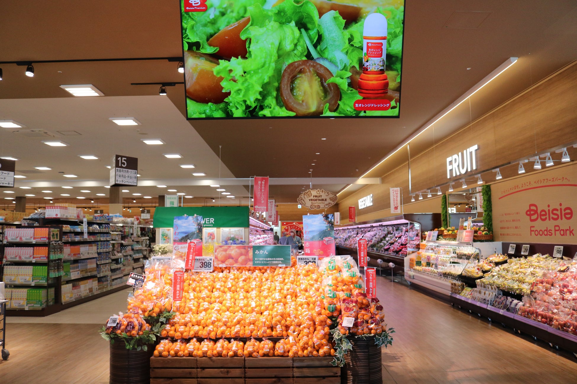 2020年9月の消費者調査において、お客様はベイシアに「新鮮さ」を期待していることがわかりました。当社はこの結果をもとに部署横断的に改善プロジェクトを発足させ、生鮮食品の仕入れ方法の見直し、最新テクノロジーを駆使した配送方法の採用など、社を挙げて様々な鮮度改善を推進。改良・改善してきた新スキームを結集し、2022年秋に「Foods Park」1号店としてベイシア大田原店をオープンいたしました。その後も店舗改装をする中で「Foods Park」化を進めており、この度のベイシア旭サンモール店は「Foods Park」の17店舗目の展開となります。