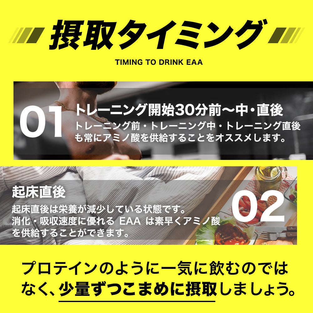 トレーニング前・トレーニング中・トレーニング直後も常にアミノ酸を供給することがオススメ。