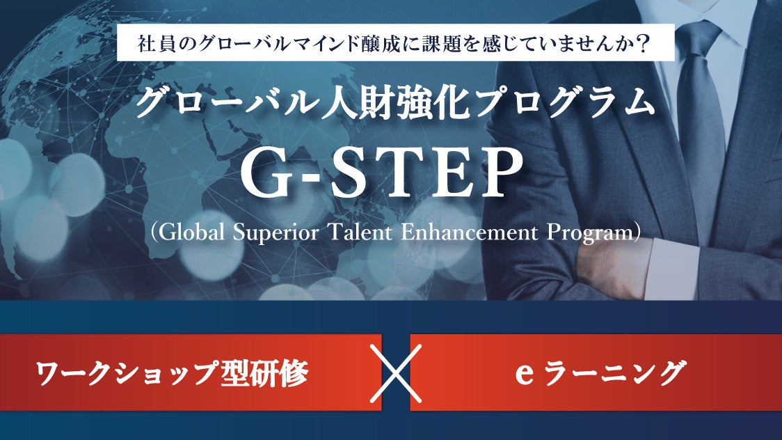 「G-STEP」とは、グローバルビジネスで必要な思考力・スキルセットを強化を目的とし、ワークショップ型研修とEラーニングを掛け合わせた研修サービスです。