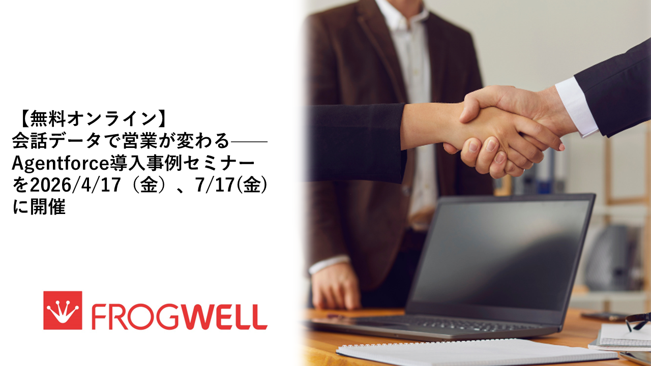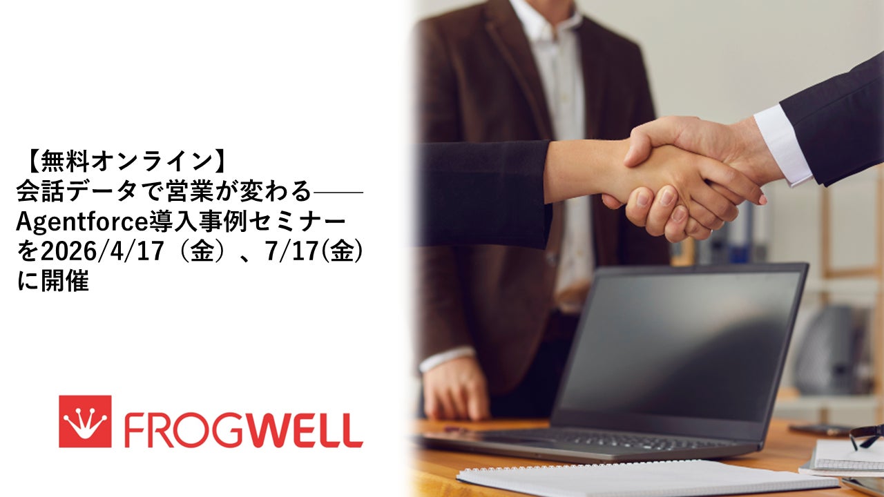フロッグウェル株式会社は、Salesforceの自律型AI「Agentforce」を活用した営業・CS組織変革をテーマに、無料オンラインセミナーを2026年4月17日(金)、7/17(金)に開催いたします。