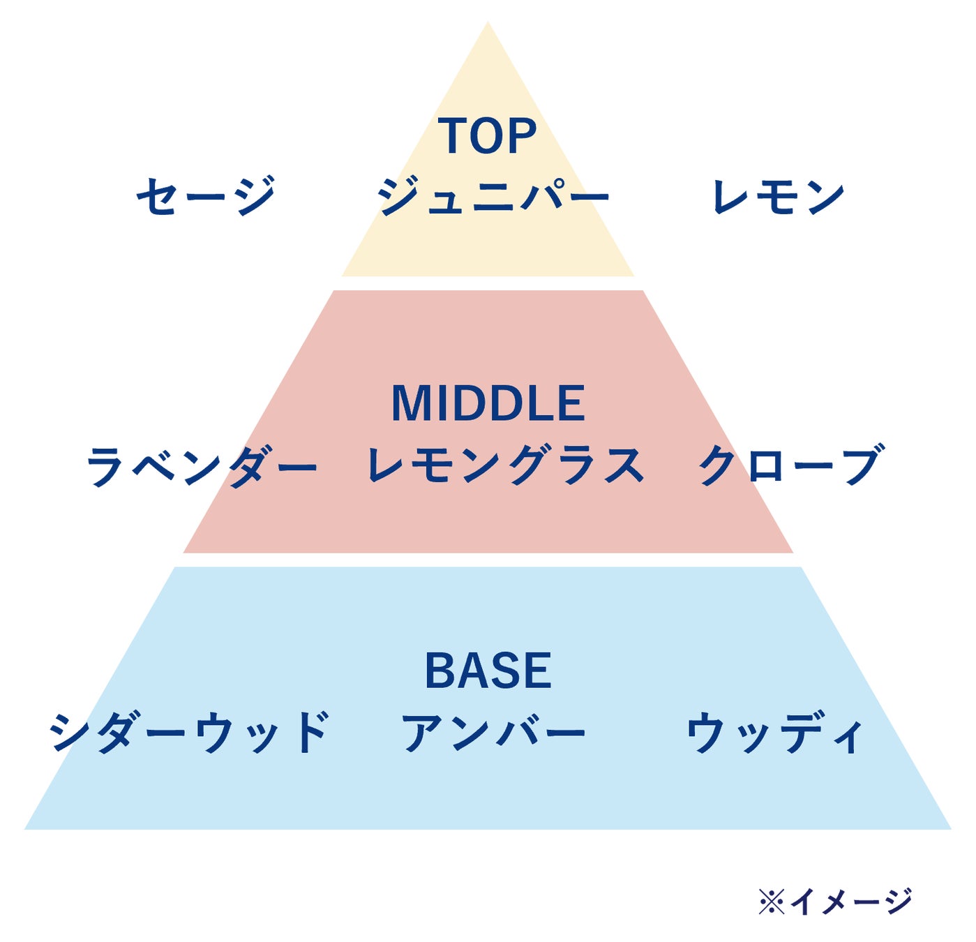 ラベンダー、ジュニパー、セージなどリラックス感のあるハーブに、クローブやアンバーの柔らさが合わさり、温もりある心落ち着く印象に仕上げたハーバルシトラス調の香りです。