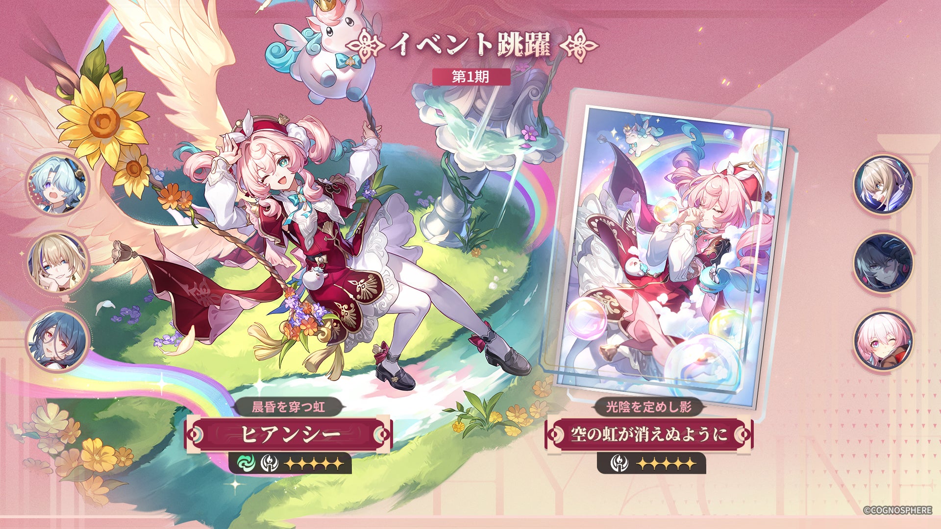 同時開催のイベント跳躍・光円錐「光陰を定めし影」では、限定星5光円錐「空の虹が消えぬように(記憶)」の出現率がアップ!