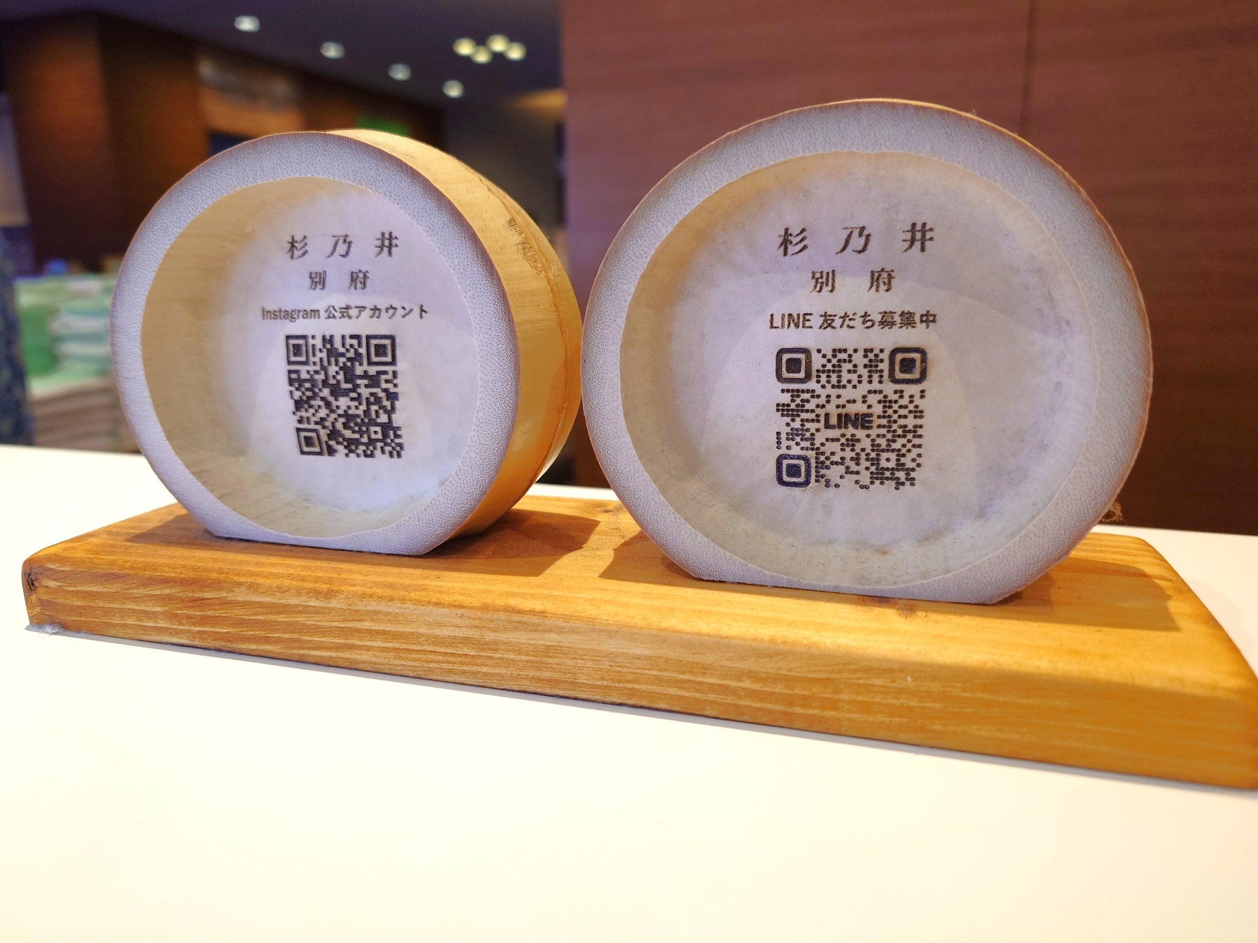 2023年7月に、杉乃井ホテル公式Instagram・LINEの2次元バーコードを刻印した竹工芸品を作成した。