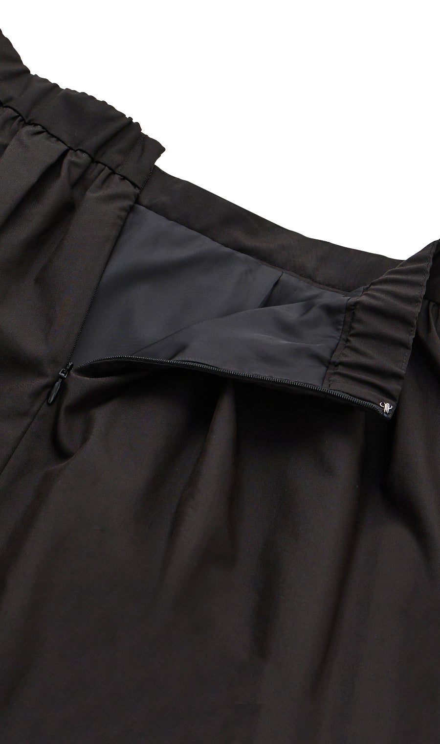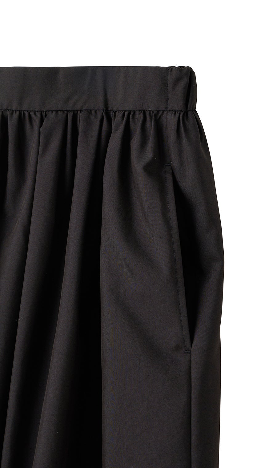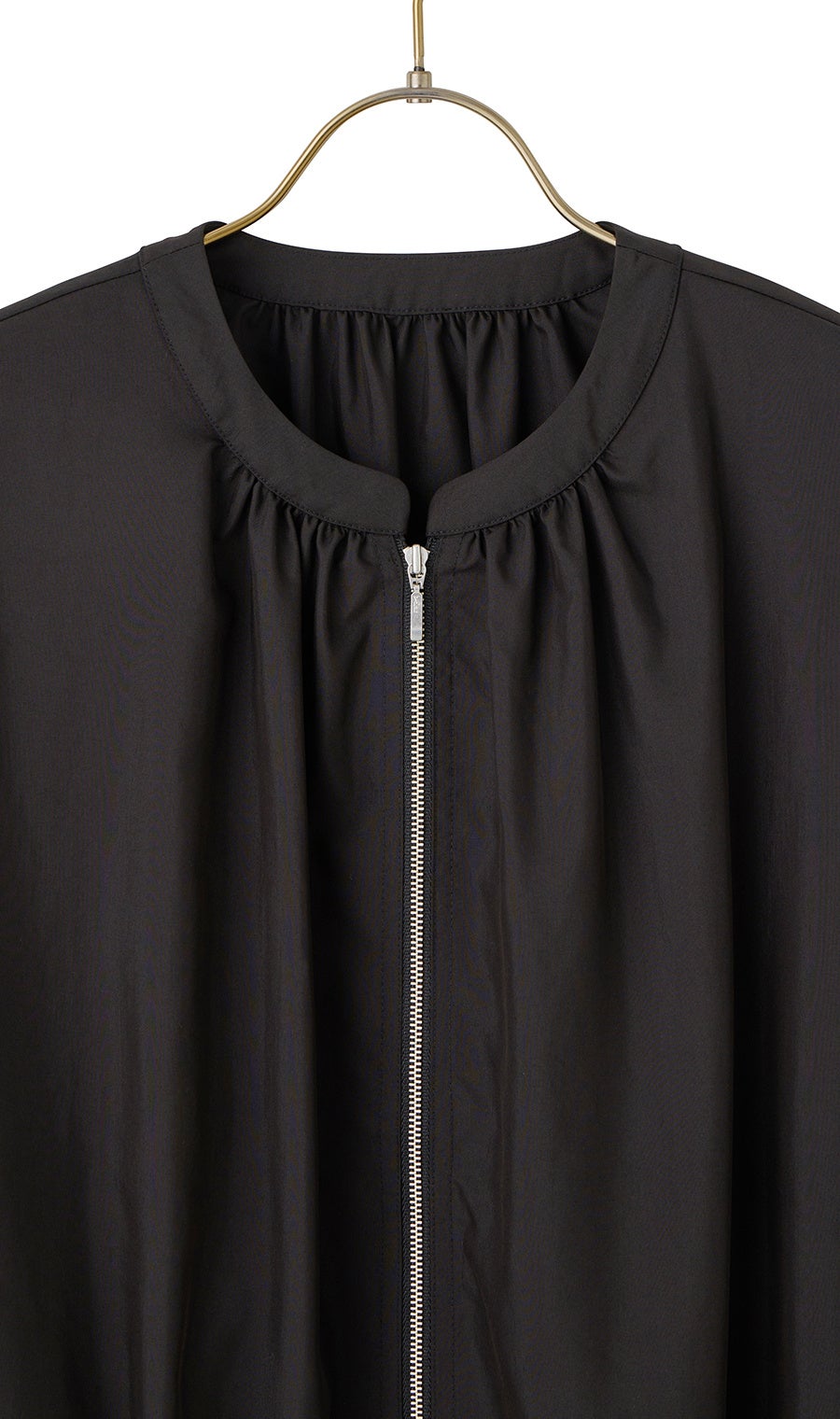 今回は、洋服の青山のレディースアイテムとして初めてブルゾンを発売。ビジネスでも安心かつシンプルなデザインで程よいきちんと感が特徴です。一般的なブルゾンは、袖のボリュームや裾を絞るひも(ドローコード)などでカジュアル見えしやすいですが、本アイテムは、そのようなディテールを抑えシンプルなデザインにしています。袖丈は、時計やアクセサリーが少し見える9分丈で、手首が出るためすっきり見えます。スカートは静電気を抑制する裏地を採用しており、足へのまとわりを軽減。腰回りには程よいギャザーを入れることで、体型カバーをしながらも上品なシルエットになっています。