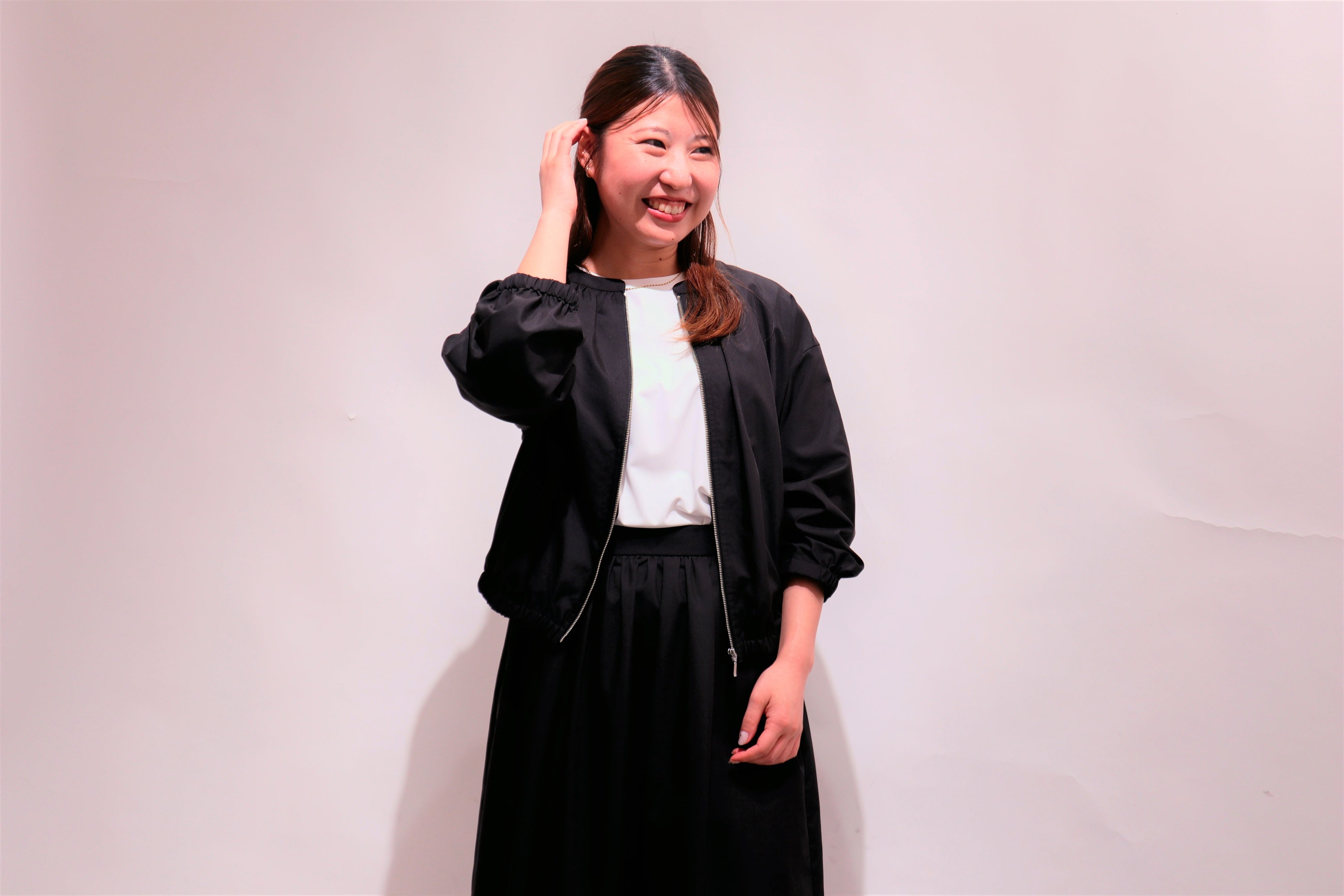 商品名:①ブルゾンジャケット(AJB5552-A) ②ボリュームフレアスカート(ASF5552-A)