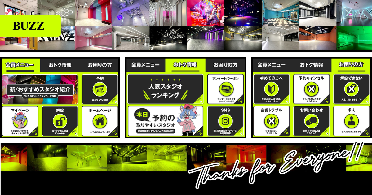 新/おすすめスタジオ紹介・予約・マイページ・解錠・ホームページ