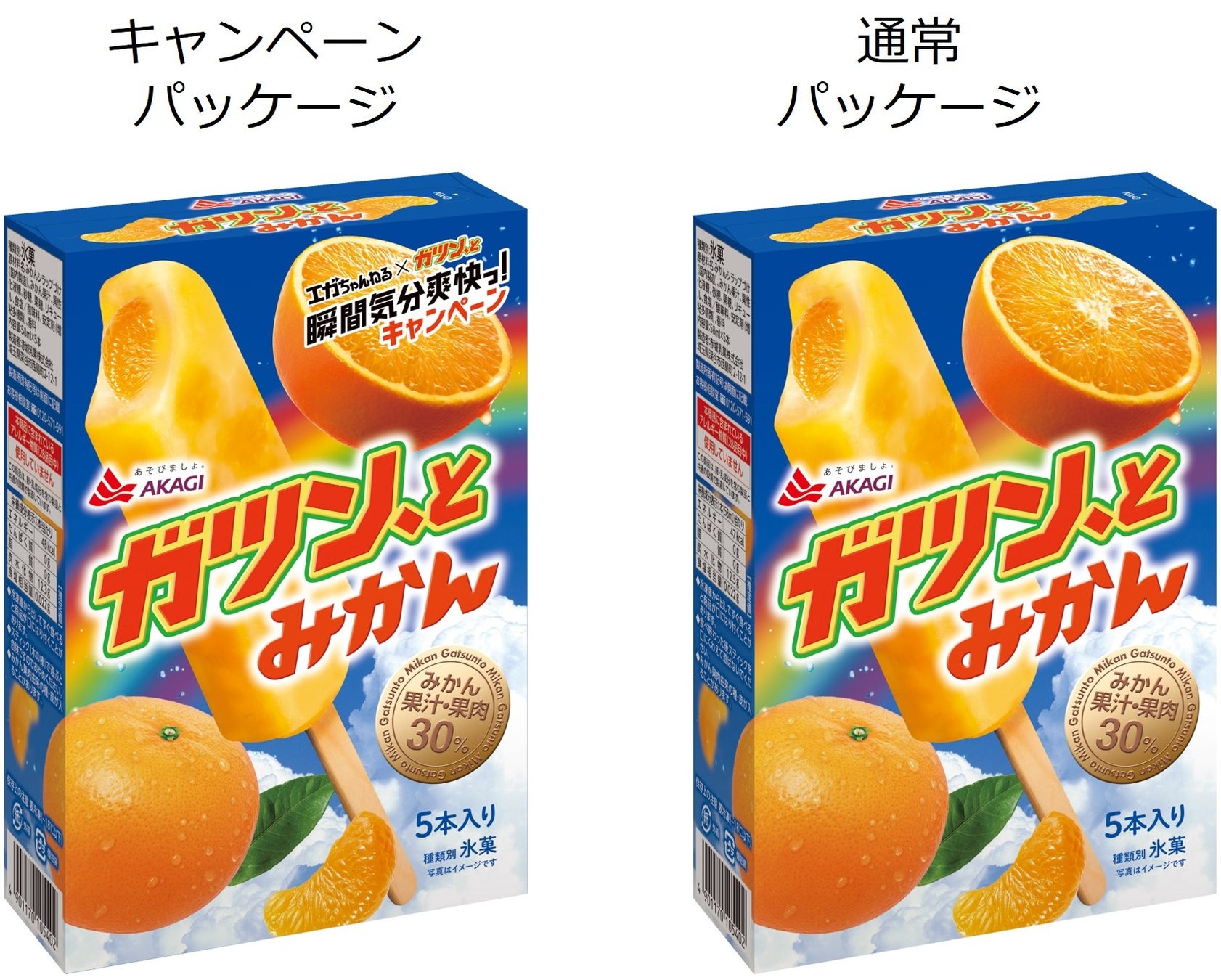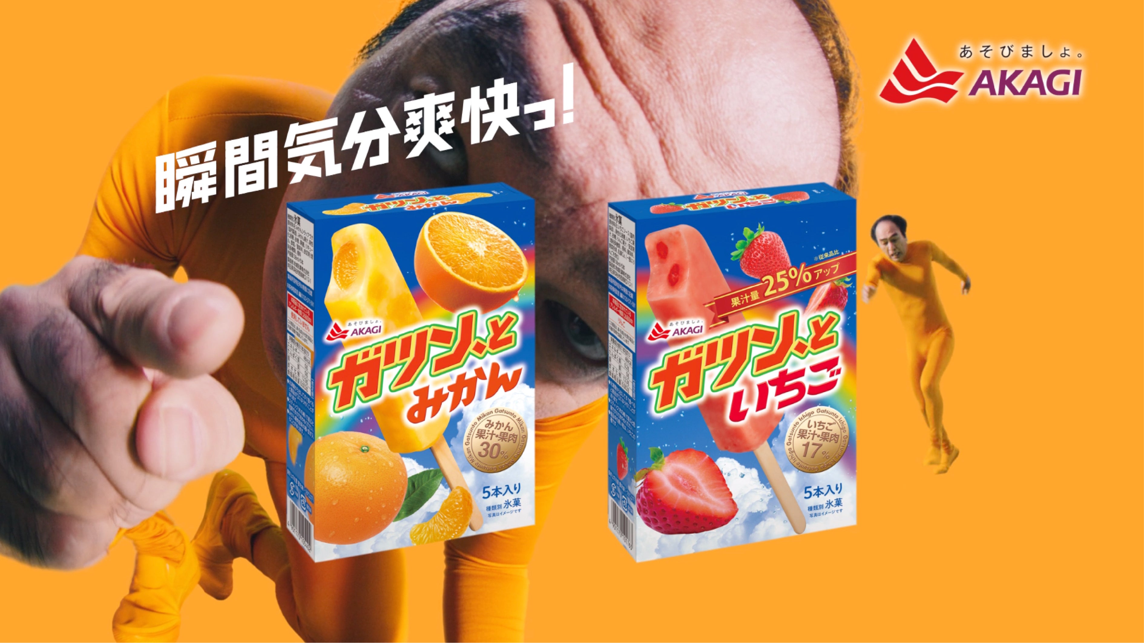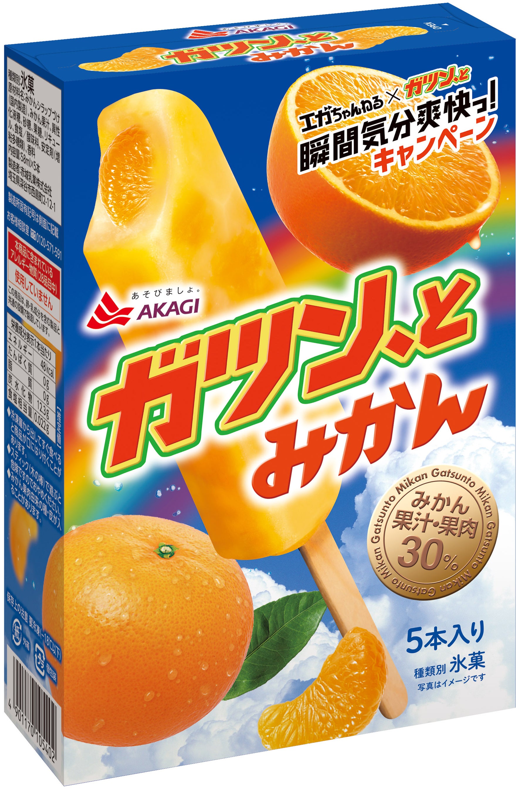 「ガツン、とみかん」は、みかん味のアイスキャンディーに、みかん果肉をガツン、と詰め込んだ”瞬間気分爽快っ!”なアイスです。