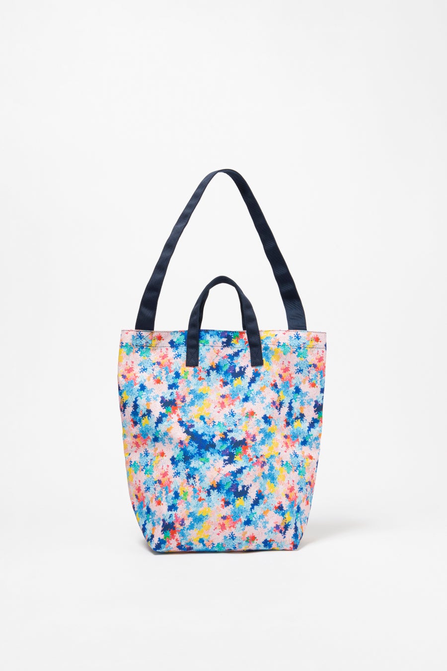 境町出身アーティスト 内海聖史氏のアートをコラージュして制作したファーマーズバッグ。普段のお買い物や移動に、アートとファッションを身近に楽しんでいただきたいという思いを込めたデザインです。内ポケットに配置した境町とUAのプロジェクトロゴや使い勝手の良さにもこだわっており、日常使いにぴったり。